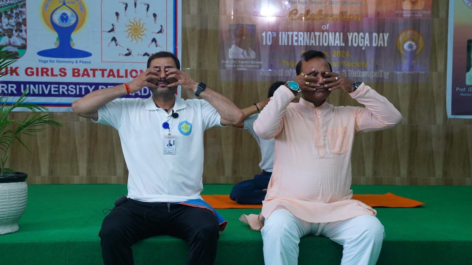 देहरादून। श्री गुरु राम राय विश्वविद्यालय (एसजीआरआरयू) में अंतर्राष्ट्रीय योग दिवस के अवसर पर स्कूल आफ यौगिक साइंस एवं नैचुरोपैथी द्वारा ‘स्वयं और समाज के लिए योग‘ वर्ष 2024 की थीम पर अंतर्राष्ट्रीय योग दिवस प्रोटोकॉल कार्यक्रम का आयोजन किया गया। श्री गुरु राम राय विश्वविद्यालय के प्रेसिडेंट श्रीमहंत देवेंद्र दास जी महाराज और विश्वविद्यालय के कुलपति प्रोफेसर डाॅ. यशबीर दीवान ने अंतर्राष्ट्रीय योग दिवस के अवसर पर सभी को शुभकामनाएं प्रेषित कीं।