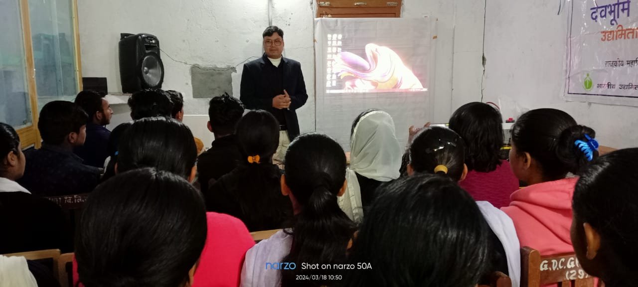 नंदानगर : शहीद जगदीश प्रसाद पुरोहित राजकीय महाविद्यालय नंदानगर (घाट) में देवभूमि उद्यमिता योजना के अंतर्गत 12 दिवसीय उद्यमिता विकास कार्यक्रम के आठवें दिन छात्रों नवीन उत्पादों एवं भौगोलिक परिस्थिति पर आधारित वस्तुओं पर पेटेंट करने के बारे में सीखा। महाविद्यालय में डॉ. आशु रौलेट ने छात्रों को बौद्धिक संपदा अधिकार (IPR) के बारे में जानकारी प्रदान की । साथ ही छात्रों को भौगोलिक संकेत (GI) के बारे में जानकारी दी कि कैसे वे अपने आस पास होने वाली जड़ी-बूटी एवं औषधियों को भौगोलिक संकेतों का रूप दे सकते हैं और उनसे विभिन्न प्रकार के उत्पादन कर सकते हैं ।