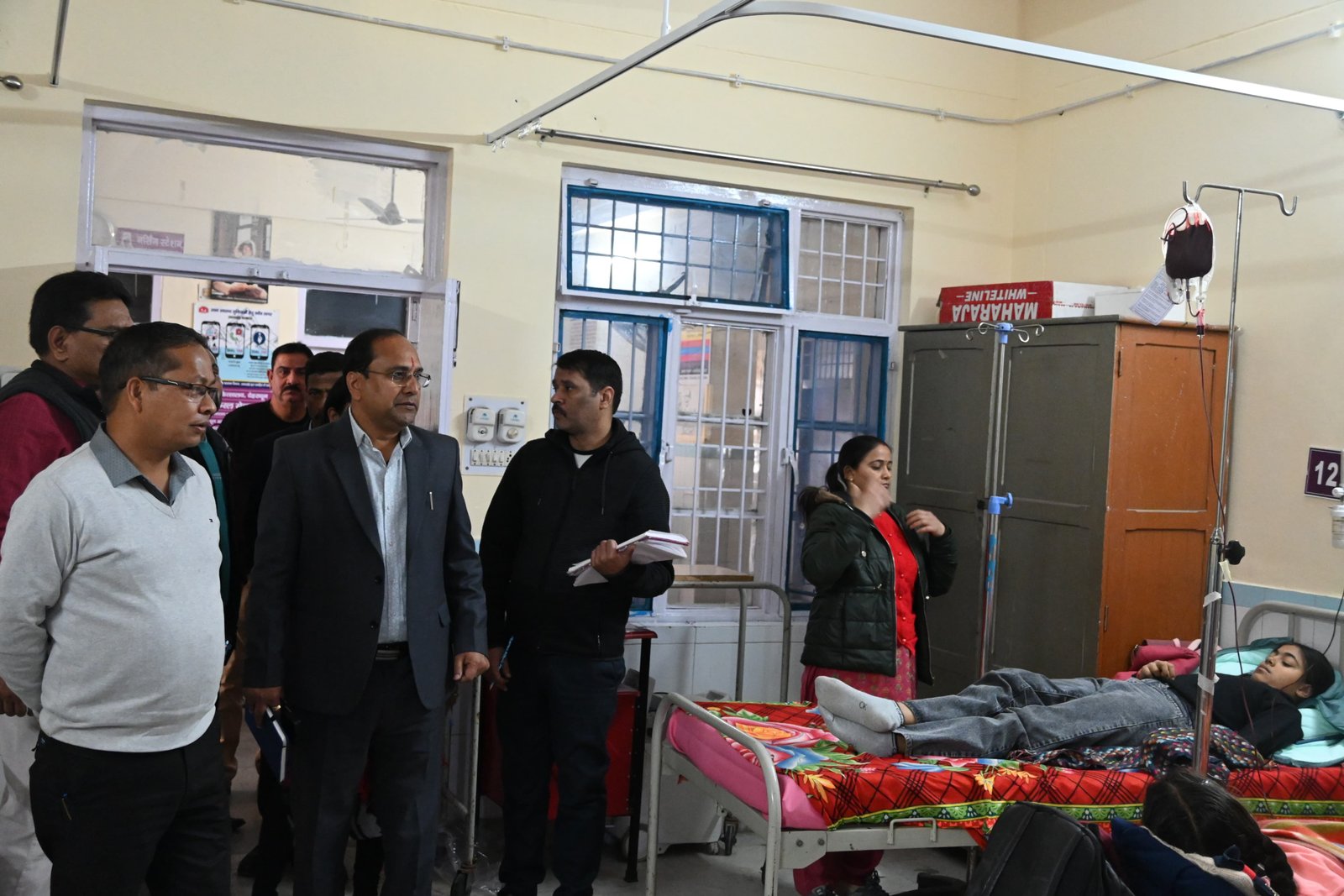 इस दौरान उन्होंने चिकित्सालय परिसर में निर्माणाधीन ब्लड बैंक एवं हिलांस आउटलेट का निरीक्षण कर कार्य प्रगति देखी तथा कार्यों में तेजी लाने के निर्देश दिए। चिकित्सालय में पार्किंग निर्माण के सम्बन्ध में आरईएस के अधिकारियों को निर्देशित किया। निरीक्षण के दौरान मुख्य चिकित्साधिकारी डाॅ मनोज शर्मा, प्रमुख चिकित्सा अधीक्षक डाॅ यशपाल सिंह चैहान, डाॅ दिनेश चैहान, मुख्य प्रशासनिक अधिकारी राजू सब्बरवाल, डीपीओ डीएस नेगी।