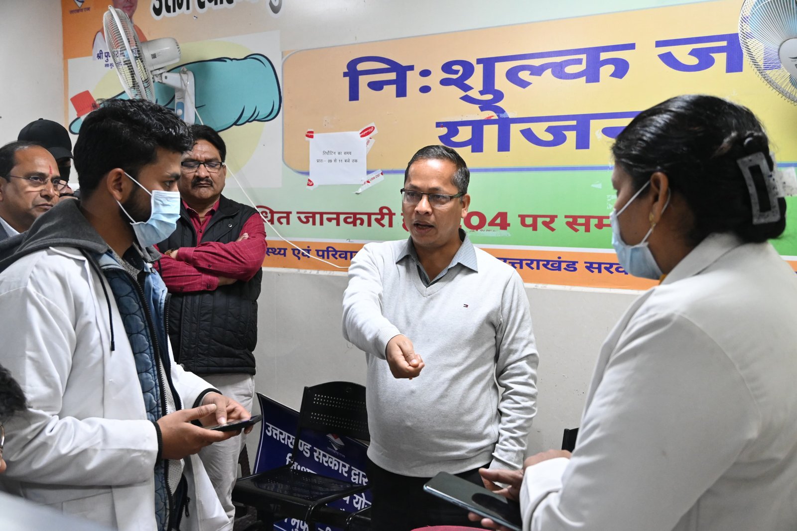 देहरादून : जिलाधिकारी सविन बसंल के निर्देशों के अनुपालन में उप जिलाधिकारी सदर/प्रभारी अधिकारी स्वास्थ्य विभाग हरिगिरि ने आज जिला चिकित्सालय कोरोनेशन का औचक निरीक्षण कर व्यवस्थाओं को देखा। निरीक्षण के दौरान उप जिलाधिकारी ने पंजीकरण कक्ष, वार्ड, दवाई काउंटर, चन्दन लैब कांउटर, आशाघर सहित परिसर का निरीक्षण करते हुए व्यवस्थाएं देखी। उप जिलाधिकारी ने दवाई कांउटर के निरीक्षण के दौरान चिकित्सालय लगने वाली समुचित दवाई की लिस्ट चस्पा करने के निर्देश दिए साथ ही निर्देशित किया कि जो दवाई उपलब्ध हैं व नही हैं के स्टाॅक के सम्बन्ध में विवरण तलब किया। उन्होंने पंजीकरण कक्ष में उपस्थित कार्मिको की संख्या एवं उपस्थिति की जानकारी प्राप्त की वहीं डय्टी में उपस्थित महिला/पुरूष जवानों को सुरक्षा व्यवस्था के साथ ही कांउटर पर लगे लोगों की सहायता करते हुए व्यवस्थित रूप से कतार लगाने में सहयोग के निर्देश दिए।