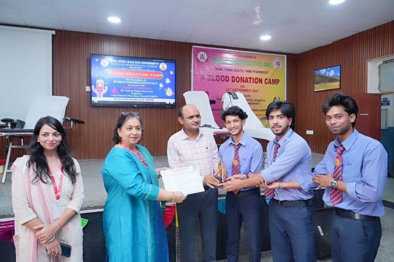 मुख्य अतिथि के.एस. फर्सवान ने अपने प्रेरक उद्बोधन में कहा कि फार्मासिस्ट केवल दवा वितरक नहीं होते, बल्कि समाज और स्वास्थ्य सेवा प्रणाली के एक मजबूत स्तंभ हैं। गुणवत्तापूर्ण स्वास्थ्य सेवाओं तक पहुँच, जनकल्याण और वैज्ञानिक दृष्टिकोण को बढ़ावा देने में फार्मासिस्ट की अहम भूमिका है। उन्होंने छात्रों को इस क्षेत्र में समर्पण, नैतिकता और उच्च गुणवत्ता के साथ आगे बढ़ने की प्रेरणा दी। कार्यक्रम के दौरान स्कूल ऑफ फार्मास्यूटिकल साइंसेज द्वारा श्री महंत इन्दिरेश अस्पताल के ब्लड बैंक के सहयोग से रक्तदान शिविर का भी आयोजन किया गया, जिसमें 50 यूनिट रक्त एकत्र हुआ। इस अवसर पर विश्वविद्यालय के शिक्षकगण, कर्मचारीगण एवं छात्रगण बड़ी संख्या में उपस्थित रहे। कार्यक्रम का समापन धन्यवाद ज्ञापन के साथ हुआ।
