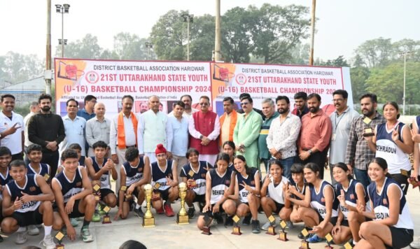 हरिद्वार : कैबिनेट मंत्री गणेश जोशी ने आज शुक्रवार को रामलीला मैदान बी.एच.ई.एल. हरिद्वार में आयोजित 21वीं यूथ स्टेट अंडर-16 बास्केट बॉल बालक बालिका प्रतियोगिता के समापन कार्यक्रम में बतौर मुख्य अतिथि के रूप में प्रतिभाग किया। कार्यक्रम का शुभारंभ कैबिनेट मंत्री गणेश जोशी ने खिलाड़ियों से उनका परिचय प्राप्त कर किया और उनका उत्साहवर्धन किया।
