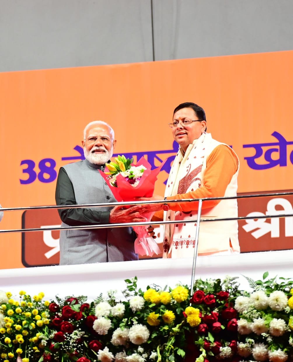 देहरादून : प्रधानमंत्री नरेंद्र मोदी के प्रेरक संबोधन और अधिकारिक उद्घोषणा के साथ ही मंगलवार शाम से उत्तराखंड में 38वें राष्ट्रीय खेलों का रंगारंग शुभारंभ हो गया है। मंगलवार शाम को देहरादून में राजीव गांधी इंटरनेशनल क्रिकेट स्टेडियम में आयोजित उद्घाटन समारोह को संबोधित करते हुए प्रधानमंत्री नरेंद्र मोदी ने कहा कि देवभूमि उत्तराखंड आज युवा ऊर्जा से और भी दिव्य हो उठा है, बाबा केदार, बद्ररीनाथ जी, मां गंगा के शुभाशीष के साथ आज यहां नेशनल गेम्स शुरू हो रहे हैं। प्रधानमंत्री ने कहा कि ये वर्ष उत्तराखंड के निर्माण का 25वां वर्ष भी है, इस खास अवसर पर इस युवा राज्य में देश के अलग- अलग हिस्सों से आए, हजारों युवा अपना सामर्थ्य दिखाने वाले हैं। इससे यहां एक भारत, श्रेष्ठ भारत की सुंदर तस्वीर नजर आ रही है। प्रधानमंत्री ने शानदार आयोजन के लिए उत्तराखंड के मुख्यमंत्री पुष्कर सिंह धामी और उनकी टीम को बधाई दी।