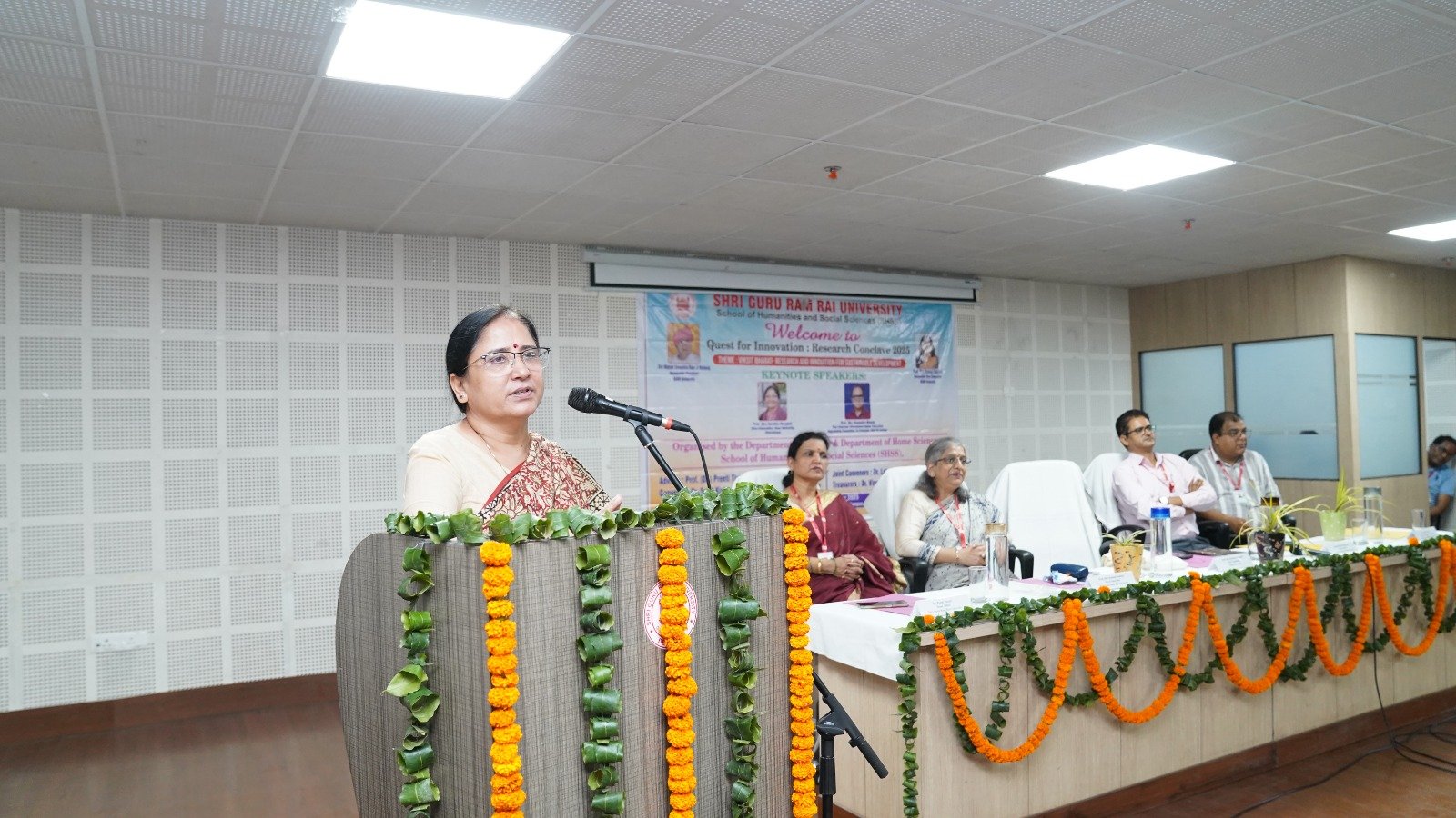 देहरादून। श्री गुरु राम राय विश्वविद्यालय के स्कूल ऑफ ह्यूमैनिटीज़ एंड सोशल साइंसेज़ में ” रिसर्च कॉन्क्लेव 2025″ का सफल आयोजन किया गया। इस कार्यक्रम की थीम “विकसित भारत – सतत विकास हेतु अनुसंधान और नवाचार” रही। 19 से 20 सितंबर तक चलने वाले इस दो दिवसीय सम्मेलन का आयोजन इतिहास और गृह विज्ञान विभाग के संयुक्त तत्वावधान में किया गया। सम्मेलन का आयोजन विश्वविद्यालय के पथरी बाग स्थित सभागार में हुआ, जिसमें विश्वविद्यालय के विभिन्न स्कूलों के शोधार्थियों, शिक्षकों और प्रतिभागियों ने नवाचार एवं सतत विकास पर अपने विचार और शोध प्रस्तुत किए।