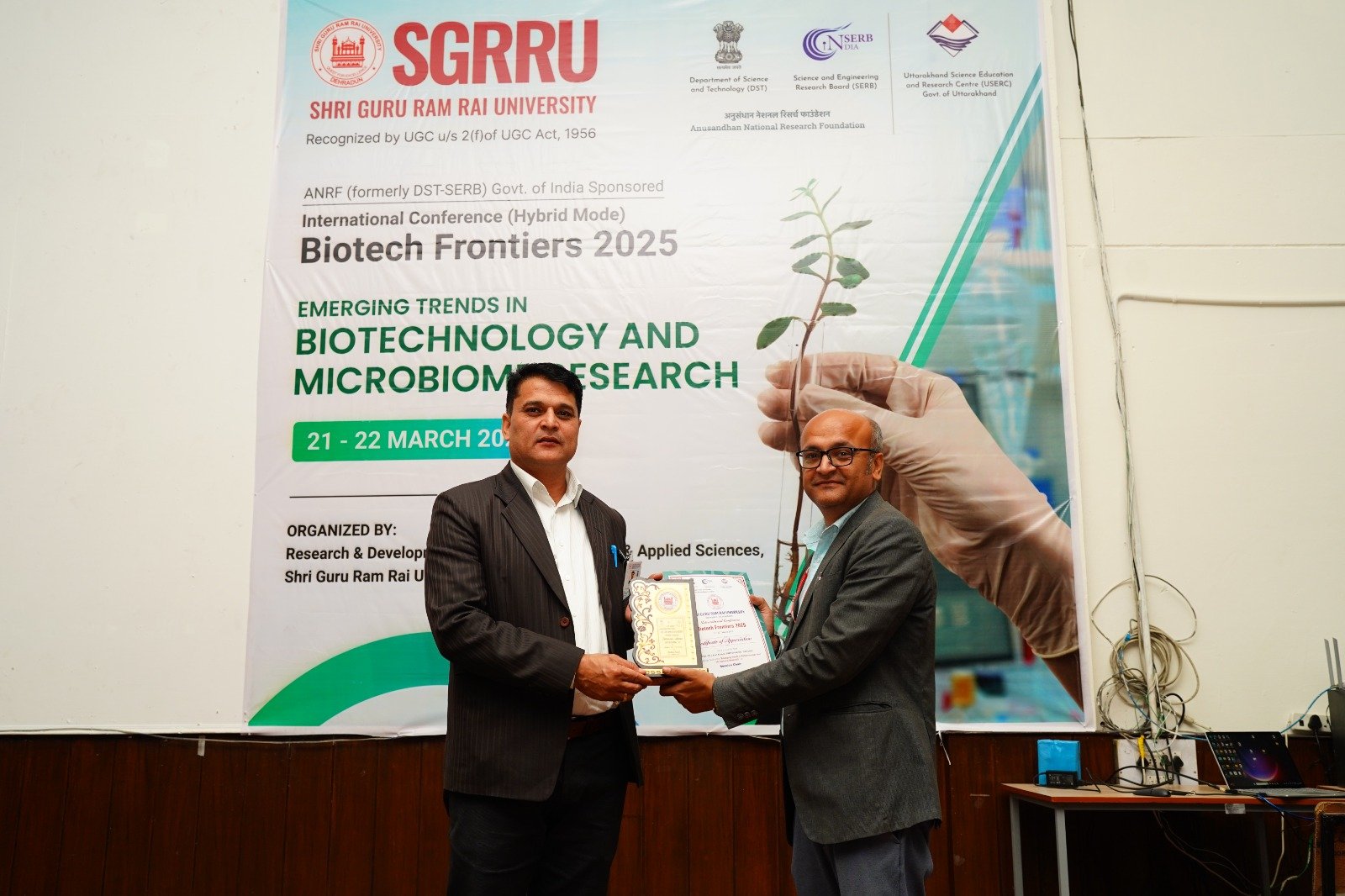 डाॅ कुमार सिद्धार्थ सिंह, आईआईटी पटना, प्रो. डाॅ सुदर्शन सिंह, चियंगमिआई विश्वविद्यालय, थाईलैंण्ड, प्रो. वेरेनियम ओहाल, प्रो अनासेचेज सिल्वा, काइंब्रा विश्वविद्यालय, पुर्तगाल सहित 100 से अधिक शोधार्थियों ने अपने अपने शोध पत्रों के माध्यम से बायोटेक से सम्बन्धित विभिन्न महत्वपूर्णं विषयों पर जानकारी सांझा की। श्री गुरु राम राय विश्वविद्यालय की निहारिका आर्या को बैस्ट पोस्टर का अवार्ड मिला। दिशांनी मलिक, आईआईटी रुड़की को यंग साइंटिस्ट अवार्ड से सम्मानित किया गया। विश्वविद्यालय की कुलपति डाॅ प्रो. कुमुद सकलानी, प्रो. जे.पी. पचैरी, सलाहकार, प्रेजिडेंट, श्री गुरु राम राय विश्वविद्यालय, डाॅ लोकेश गम्भीर, कुलसचिव, एसजीआरआरयू एवं डाॅ गिरीश चन्द्रा द्वारा सभी विजेताओं को सम्मानित किया गया। डाॅ रश्मि वर्मा जुयाल ने धन्यवाद ज्ञापित किया।