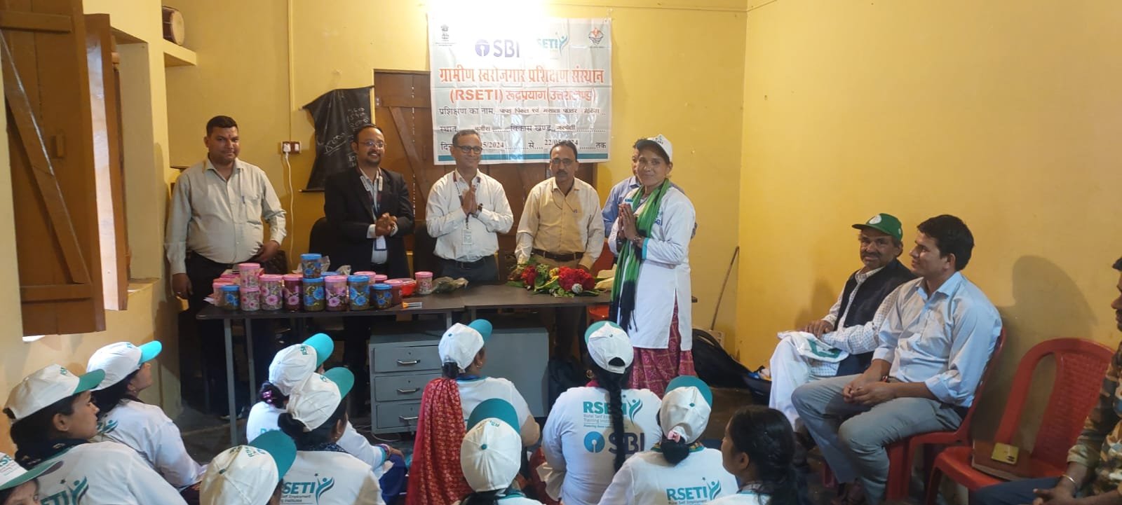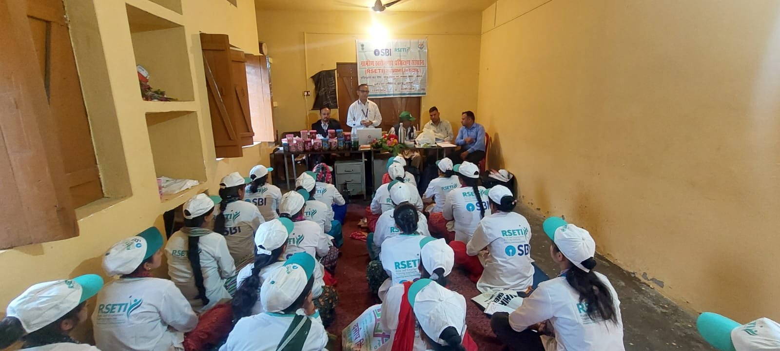 आरसेटी के प्रशिक्षण एवं कार्यक्रम संयोजक वीरेन्द्र सिंह बत्र्वाल द्वारा भी प्रशिक्षणाार्थियों को समय प्रबन्धन, मार्केट सर्वे, जोखिम प्रबन्धन सहित, उद्यमिता विकास स्वरोजगार चयन तथा पर्यटन के साथ जूड़ी स्वरोजगार की गतिविधियों पर जानकारी दी। उन्होंने ग्रामीण महिलाओं को उनके द्वारा तैयार कृषि एवं फल, फूल आदि उत्पादों तथा ग्रामीण स्तर पर होनेे वाले उत्पादों का मूल्य सवंवर्धन कैसे किया जा सकता है के बारे में जानकारी दी गयी। कार्यक्रम के मुख्य अतिथि अग्रणी बैंक प्रबन्धक चतर सिंह द्वारा द्वारा बताया गया कि एसबीआई आरसेटी ग्रामीण क्षेत्र में बेरोजगार युवक-युवतियों को रोजगार से जोड़ने के लिए प्रयासरत हैै। साथ ही उन्होनें उन्हें बैकिंग से जूड़ी महत्वपूर्ण जानकारियों से अवगत कराया।