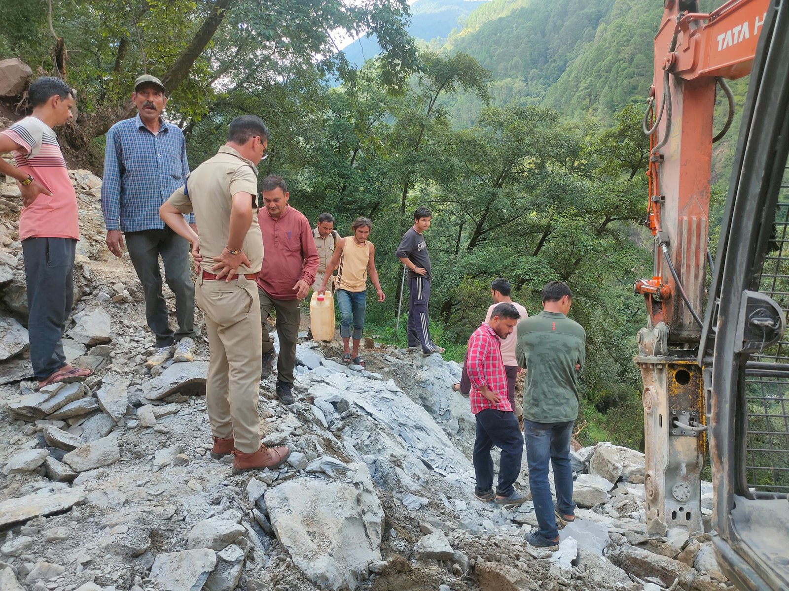 छेनागाड़ में लगातार जारी है सर्च एवं रेस्क्यू अभियान, जेसीबी मशीन द्वारा मलवा एवं बड़े बोल्डरों को हटाने का कार्य जारी, दबी हुई दुकानों से सामग्री प्राप्त, अभी तक कोई शव बरामद नहीं