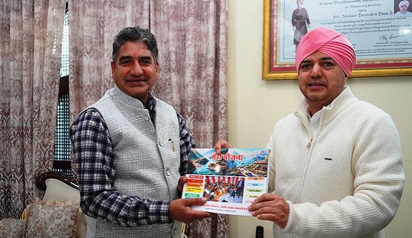 सचिव कार्यक्रम क्रियान्वयन विभाग दीपक कुमार ने मेरी योजना पुस्तक श्रीमहंत देवेन्द्र दास जी महाराज को की भेंट