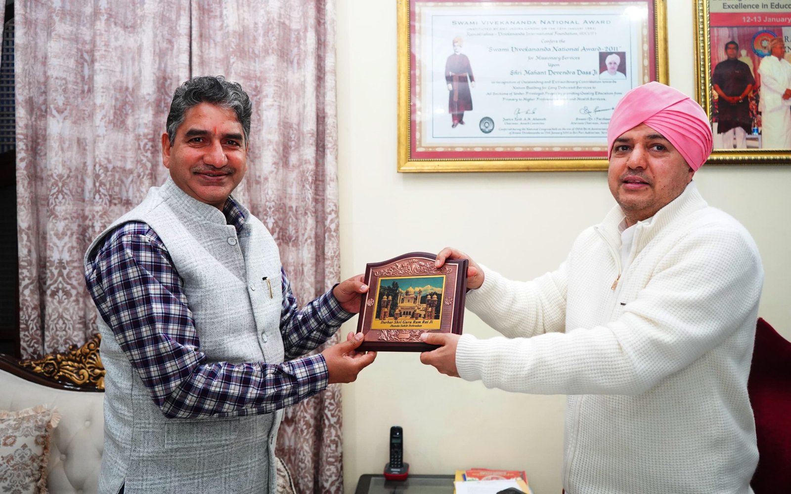 देहरादून। कार्यक्रम क्रियान्वयन विभाग की ओर से प्रकाशित पुस्तक मेरी योजना की प्रतियां सचिव कार्यक्रम क्रियान्वयन विभाग, उत्तराखण्ड शासन दीपक कुमार ने श्रीमहंत देवेन्द्र दास जी महाराज को भेंट की। वह शुक्रवार को श्री दरबार साहिब पहुंचे। उन्होंने श्री दरबार साहिब में माथा टेका और श्रीमहंत देवेन्द्र दास जी महाराज से आशीर्वाद प्राप्त किया। इस अवसर पर सचिव कार्यक्रम क्रियान्वयन विभाग, उत्तराखण्ड शासन दीपक कुमार ने कहा कि एसजीआरआर ग्रुप के संस्थानों के द्वारा शिक्षा, चिकित्सा शिक्षा, स्वास्थ्य एवं उच्च शिक्षा के क्षेत्र में उल्लेखनीय कार्य किये जा रहे हैं। उन्होंने श्री महाराज जी से अनुरोध किया कि इस पुस्तक के माध्यम से सरकार की योजनाओं की जानकारी को एसजीआरआर ग्रुप के सभी संस्थानों तक पहुंचाने में आवश्यक दिशा निर्देश जारी करने की कृपा कीजिए।