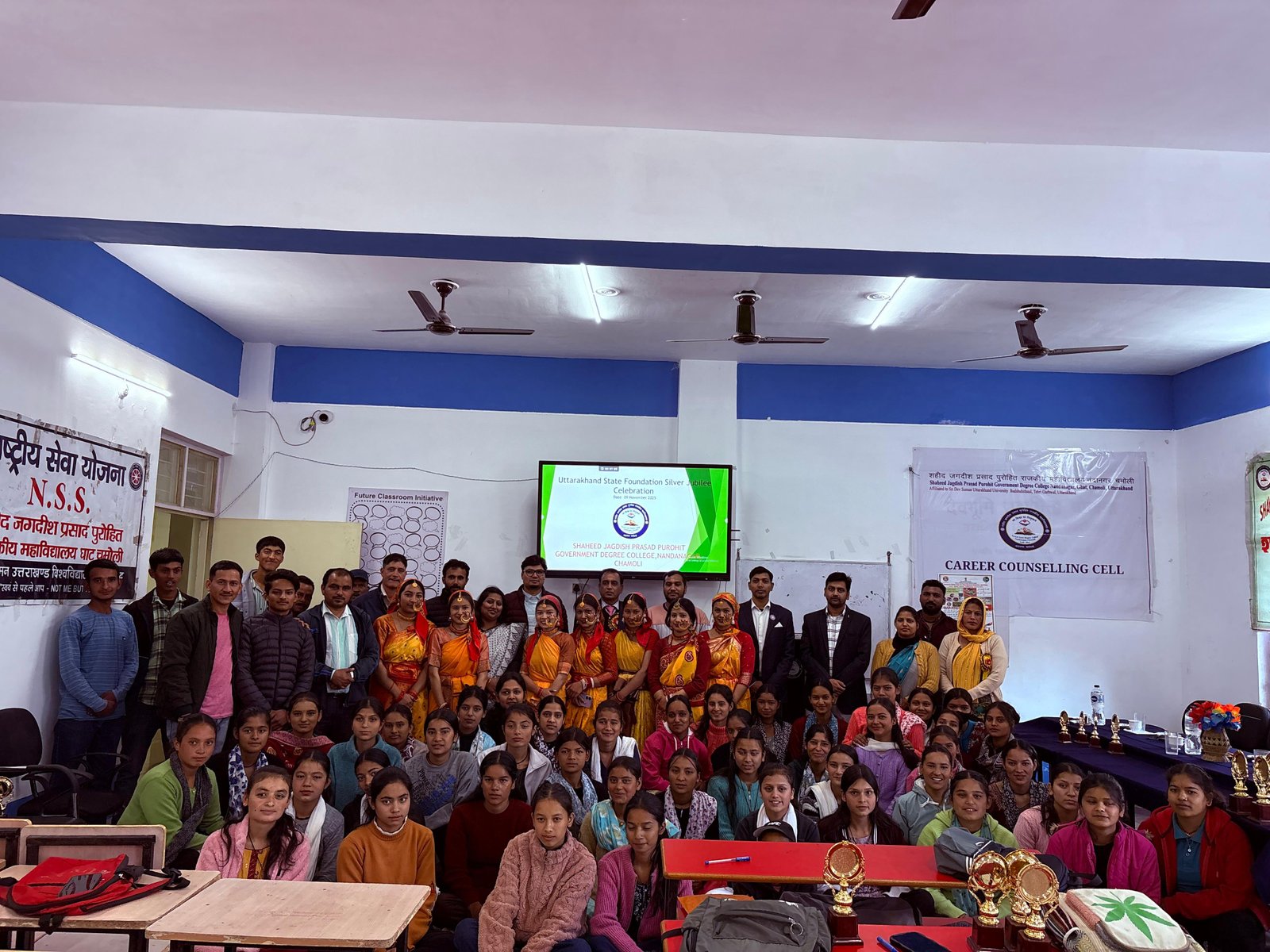 कार्यक्रम की एक महत्वपूर्ण कड़ी में सहायक प्राध्यापक डॉ. दीपा और डॉ. दीपक कुमार ने उत्तराखण्ड के 25 वर्षों के सफर पर अपने विचार प्रस्तुत किए। उन्होंने राज्य की अब तक की उपलब्धियों को रेखांकित किया और साथ ही भविष्य की चुनौतियों पर भी गहन चिंतन किया। इस विचार-मंथन में दो छात्राओं ने भी अपने दृष्टिकोण साझा करते हुए राज्य के विकास पथ पर महत्वपूर्ण बिंदुओं को उठाया।