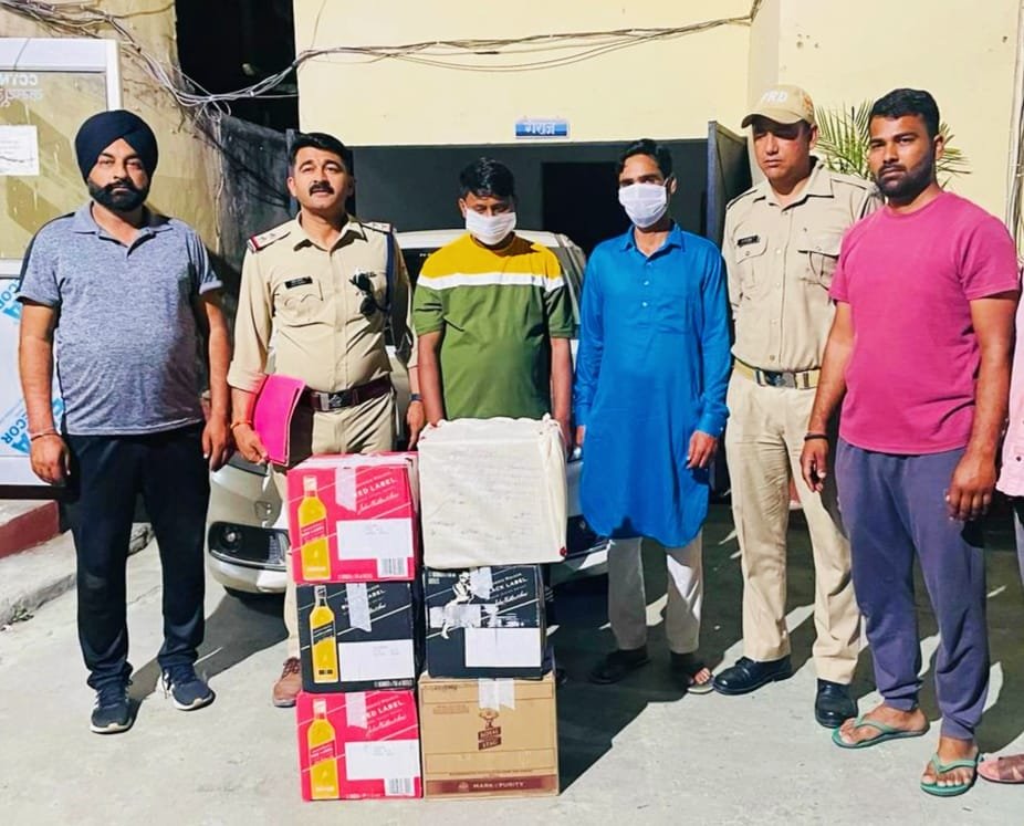 थानाध्यक्ष बनबसा लक्ष्मण सिह जगवाण तथा एस.ओ.जी प्रभारी मनीष खत्री के कुशल नेतृत्व में 29 मार्च 2024 को थाना बनबसा के कैनाल स्कूल मोड़ भारत-नेपाल मार्ग पर थाना बनबसा पुलिस एंव SOG टीम की संयुक्त चैकिंग के दौरान अभियुक्तगण 1-नजमूल हसन पुत्र तुल्लन, निवासी उमरू खुर्द, इस्लाम नगर, खटीमा, उधम सिंह नगर, उम्र 28 वर्ष तथा 2-रियाज अहमद उर्फ़ सानू पुत्र ईशाक अहमद, निवासी उपरोक्त उम्र 32 वर्ष को मारूती स्विफ्ट डिजायर रजि0 नं0  UK 17 D 4452 के साथ चैकिग हेतू रोका गया तो चैकिंग करने पर मारूती स्विफ्ट डिजायर कार की डिग्गी सें दोनो अभियुक्तगण सें 05 पेटी अवैध ब्रान्डेड अंग्रेजी शराब क्रमशः 02 पेटी जोनीवाकर ब्लैक लेवल ( 24 बोतल),02 पेटी जोनीवाकर रेड लेवल (24 बोतल) 01 पेटी रोयल स्टेग ( 12 बोतल) बरामद होने पर दोनों को  गिरफ्तार किया गया । अभियुक्तगणों उपरोक्त के विरूद्ध थाना बनबसा में अन्तर्गत धारा 60/72 संयुक्त प्रान्त आबकारी अधिनियम  एक्ट पंजीकृत किया गया है ।