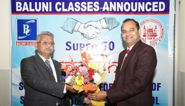 देहरादून। श्री गुरु राम राय पब्लिक स्कूल के 50 मेधावी छात्र-छात्राओं को बलूनी क्लासेज़ मेडिकल की निःशुल्क कोचिंग करवाएगा। इन मेधावी छात्र-छात्राओं का चयन सुपर-50 परीक्षा की टाॅप मेरिट के आधार पर किया जाएगा। सुपर-50 परीक्षा में प्रतिभाग करने वाले एसजीआरआर के छात्र-छात्राओं में से 50 टापर्स को इस स्कीम का लाभ मिलेगा। परीक्षा में 70 प्रतिशत से अधिक अंक अर्जित करने वाले छात्र-छात्राएं ही फ्री मेडिकल कांचिंग प्रक्रिया के हकदार होंगे। यह जानकारी पंकज नौटियाल, प्रधानाचार्य, बलूनी क्लासेज एवं श्री गुरु राम राय विश्वविद्यालय के कॉर्डिनेटर डॉ. आर.पी. सिंह द्वारा आयोजित संयुक्त प्रेस वार्ता में दी गई।