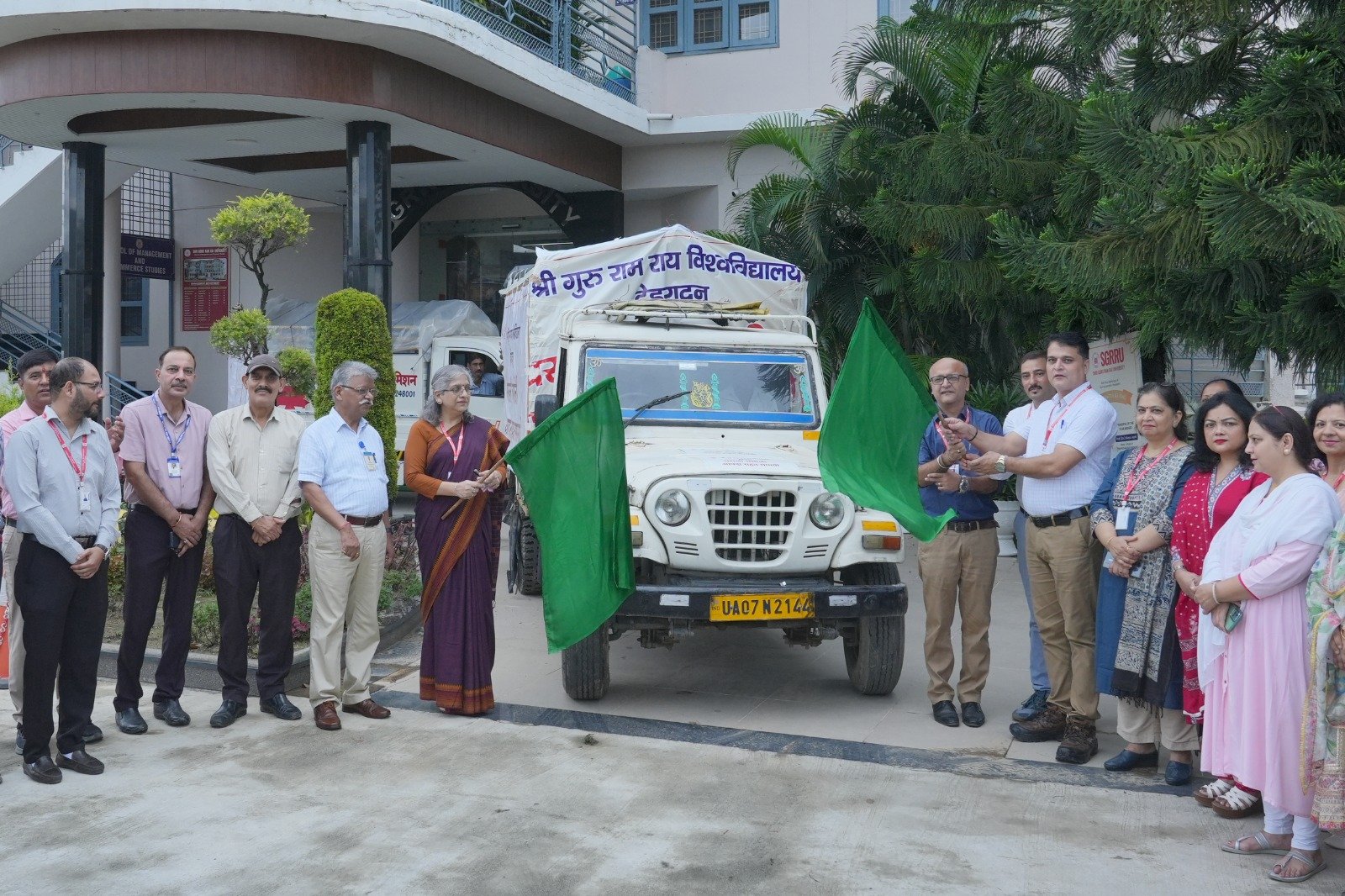 श्री गुरु राम राय विश्वविद्यालय ने थराली चमोली आपदा पीडितों के लिए भेजी राहत सामग्री, कुलपति व कुलसचिव ने हरी झण्डी दिखाकर वाहनों को किया रवाना