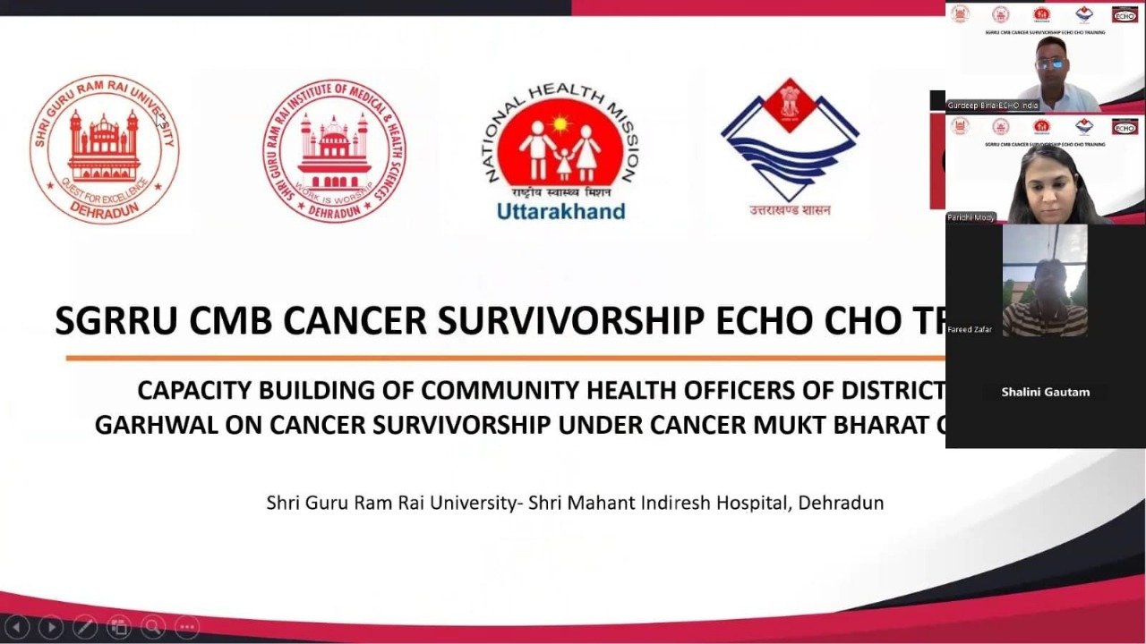 देहरादून : उत्तराखंड में कैंसर उपचार के बाद की देखभाल को सशक्त बनाने की दिशा में एक महत्वपूर्ण पहल — कैंसर सर्वाइवरशिप ट्रेनिंग प्रोग्राम का सफलतापूर्वक समापन 30 मई 2025 को हुआ। इस वर्चुअल प्रशिक्षण कार्यक्रम में पौड़ी जिले के कुल 130 कम्युनिटी हेल्थ ऑफिसर्स (CHOs) ने भाग लिया। यह कार्यक्रम श्री महंत इन्दिरेश अस्पताल, देहरादून के कैंसर विभाग, ECHO इंडिया (एनजीओ) एवं राष्ट्रीय स्वास्थ्य मिशन (NHM), उत्तराखंड सरकार के संयुक्त सहयोग से आयोजित किया गया। यह संयुक्त प्रयास राज्य में कैंसर सर्वाइवरशिप के क्षेत्र में सामुदायिक स्तर पर क्षमता निर्माण की दिशा में एक अहम कदम है।