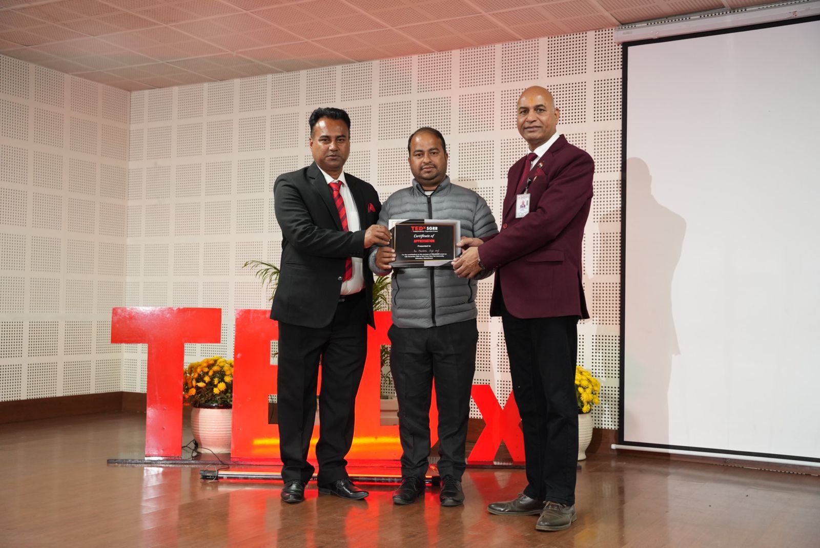 कार्यक्रम के विषय में जानकारी देते हुए प्रोफेसर डॉ पूजा जैन ने बताया कि टेडेक्स अंतरराष्ट्रीय स्तर पर विश्व प्रख्यात वक्ताओं को समाज को प्रेरित करने का एक मंच प्रदान करती है। उन्होंने बताया कि आज के इस कार्यक्रम में अंतरराष्ट्रीय स्तर पर विख्यात वक्तागण प्रतिभाग करेंगे । कार्यक्रम की शुरुआत मोटिवेशनल स्पीकर विश्व मोहन सिंह ने की । कार्यक्रम के पहले वक्ता अभिषेक गिलारा ने अपनी पुस्तक डेवलपिंग द योगी माइंडसेट के बारे में बताते हुए कहा कि संसार में सबसे खुशहाल व्यक्ति बनने के लिए मस्तिष्क में सकारात्मक विचारों का होना जरूरी है।