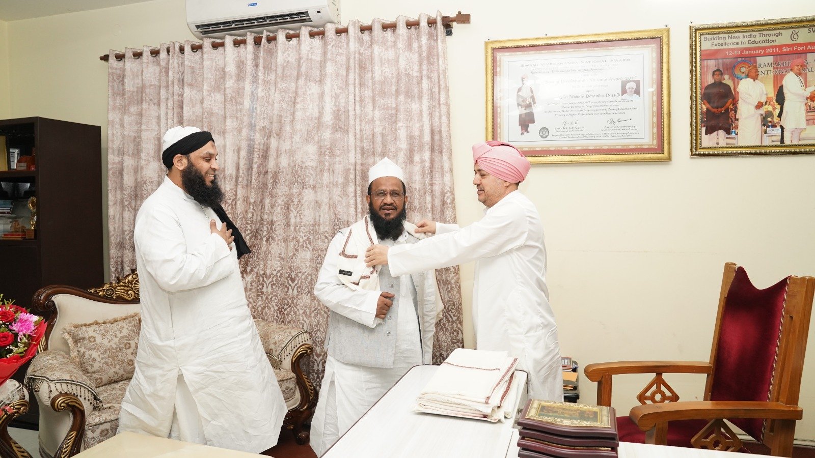 देहरादून। दारुल उलुम वक्फ बोर्ड देवबंद के प्रतिनिधिमण्डल ने शनिवार को श्री दरबार साहिब में श्रीमहंत देवेन्द्र दास जी महाराज से शिष्टाचार भेंट की। प्रतिनिधिमंण्डल में मुफ्ती मुहम्मद एहसान चीफ ओरगनाइजर ऑफ मुफ्तीज़ ऑल ओवर इण्डिया, चीफ मुफ्ती दारुल उलुम देवबंद, मुफ्ती गुफरान, प्रोफेसर जमियत-उल-उलूम देवबंद, कारी साजिद साहब (पूर्व मंत्री देवबंद, उत्तर प्रदेश सरकार), मलिक मौजान, सामाजिक कार्यकर्ता देवबंद, मुफ्ती रहीश एहमद कासमी शहर मुफ्ति देहरादून एवं चीफ इमाम उत्तराखण्ड व सदर जमित ओलामा हिन्द प्रबन्धक मदरसा जामियतुस सलाम, मौलाना तौहीद, मुजफ्फरनगर ने श्री दरबार साहिब में अमन-ओ- अमान, सभी की तरक्की और नेक राह पर चलने की दुआ मांगी। देवबंद से आए प्रतिनिधिमण्डल ने श्री दरबार साहिब के सज्जादे गद्दी नशीन श्रीमहंत देवेन्द्र दास जी महाराज को दारुल उलूम देवबंद आने का निमंत्रण दिया।
