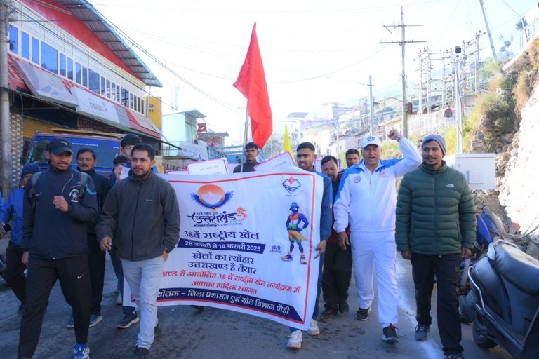 जिला खेल अधिकारी संदीप डुकलान ने जानकारी देते हुए बताया कि 28 जनवरी से देहरादून में 38वां राष्ट्रीय खेलों का आयोजन होने जा रहा है। उन्होंने कहा कि इस रैली का उद्देश्य लोगों को खेलों के महत्व के बारे में जागरूक करना है, ताकि समाज में खेलों के प्रति जागरूकता और उत्साह बढ़े। रैली के माध्यम से इस आयोजन का संदेश व्यापक रूप से लोगों तक पहुंचाने की कोशिश की गई, ताकि आगामी खेलों का सफल आयोजन हो सके और अधिक लोग इसमें भाग लें। इस मौके पर प्रशासनिक अधिकारी खेल विभाग गंगा प्रसाद, वरिष्ट सहायक शुभम रावत व विनोद कुकरेती, सुनील रावत व विभिन्न खेलों के खिलाड़ी उपस्थित थे।