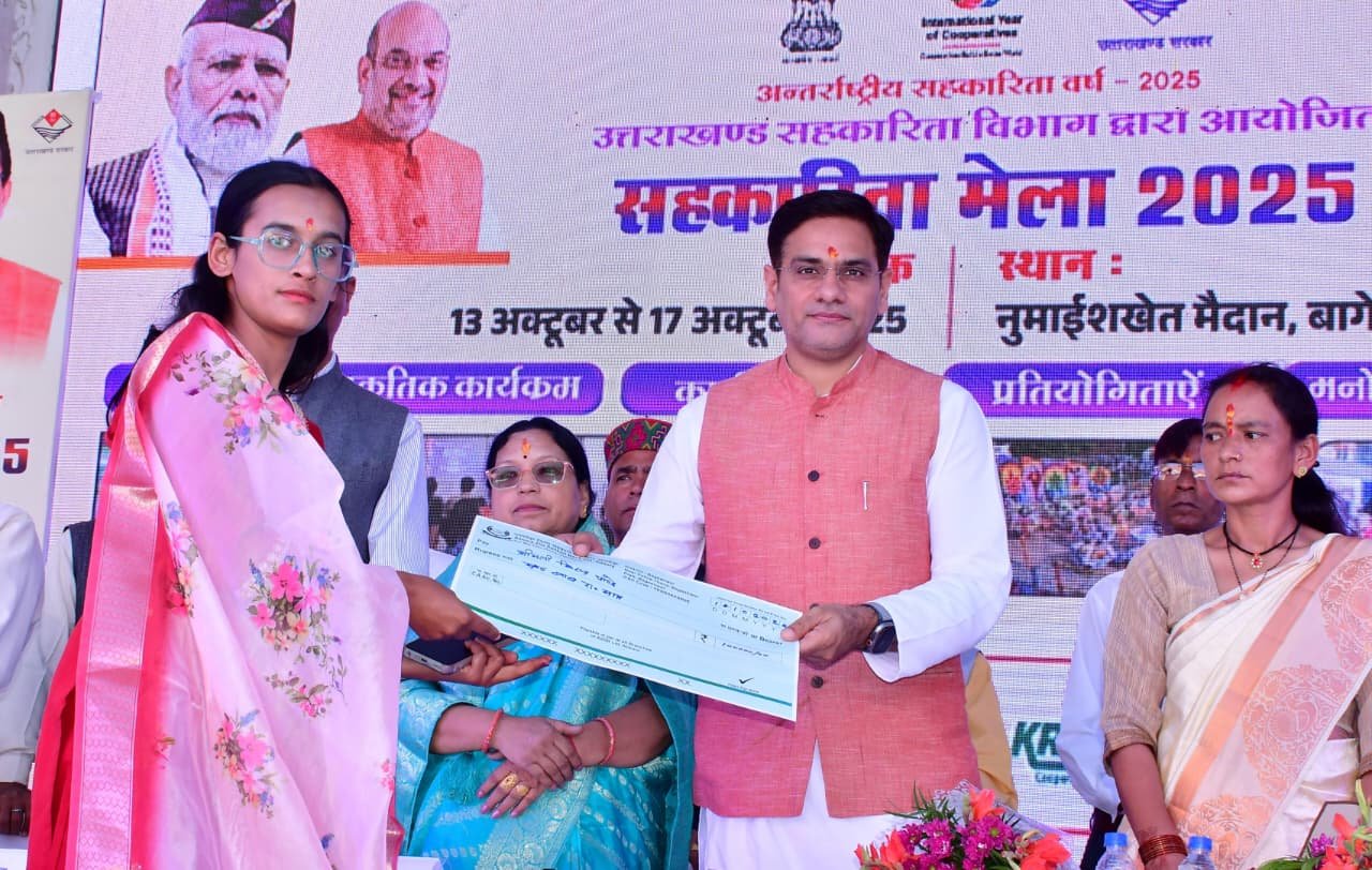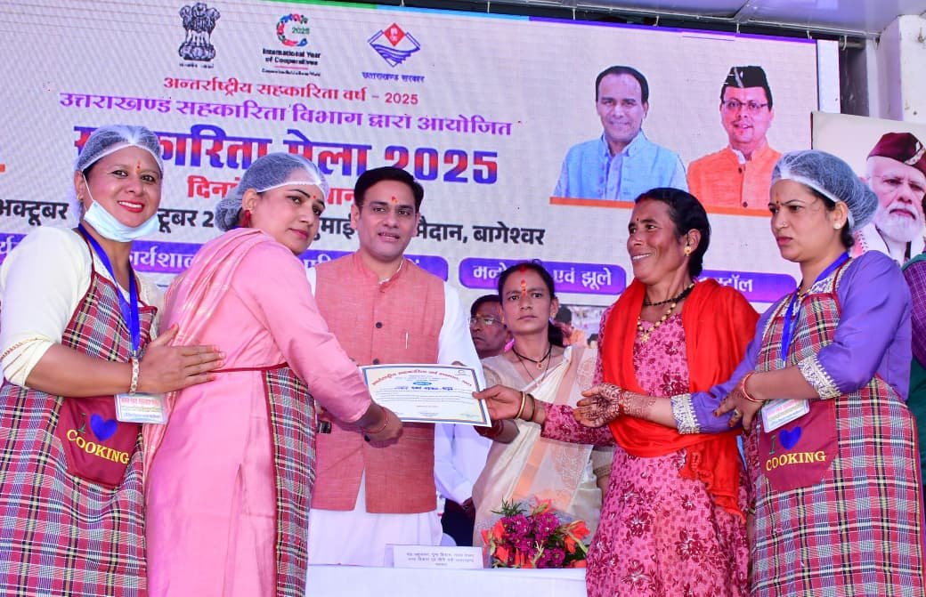 बागेश्वर : पशुपालन, दुग्ध विकास, मत्स्य पालन, कौशल विकास एवं सेवायोजन मंत्री सौरभ बहुगुणा ने नुमाइशखेत में आयोजित पांच दिवसीय सहकारिता मेले में बतौर मुख्य अतिथि प्रतिभाग किया। इस दौरान उन्होंने 24 काश्तकारों को 30 लाख के व्याज रहित ऋण व बहुदेशीय प्राथमिक सहकारी समिति आरे व बागेश्वर को माइक्रो एटीएम प्रदान किए। वहीं इस दौरान उन्होंने सहकारिता विभाग द्वारा आयोजित निबंध प्रतियोगितों में प्रथम आने वाले बच्चों को पुरस्कार और प्रमाणपत्र वितरित किए।