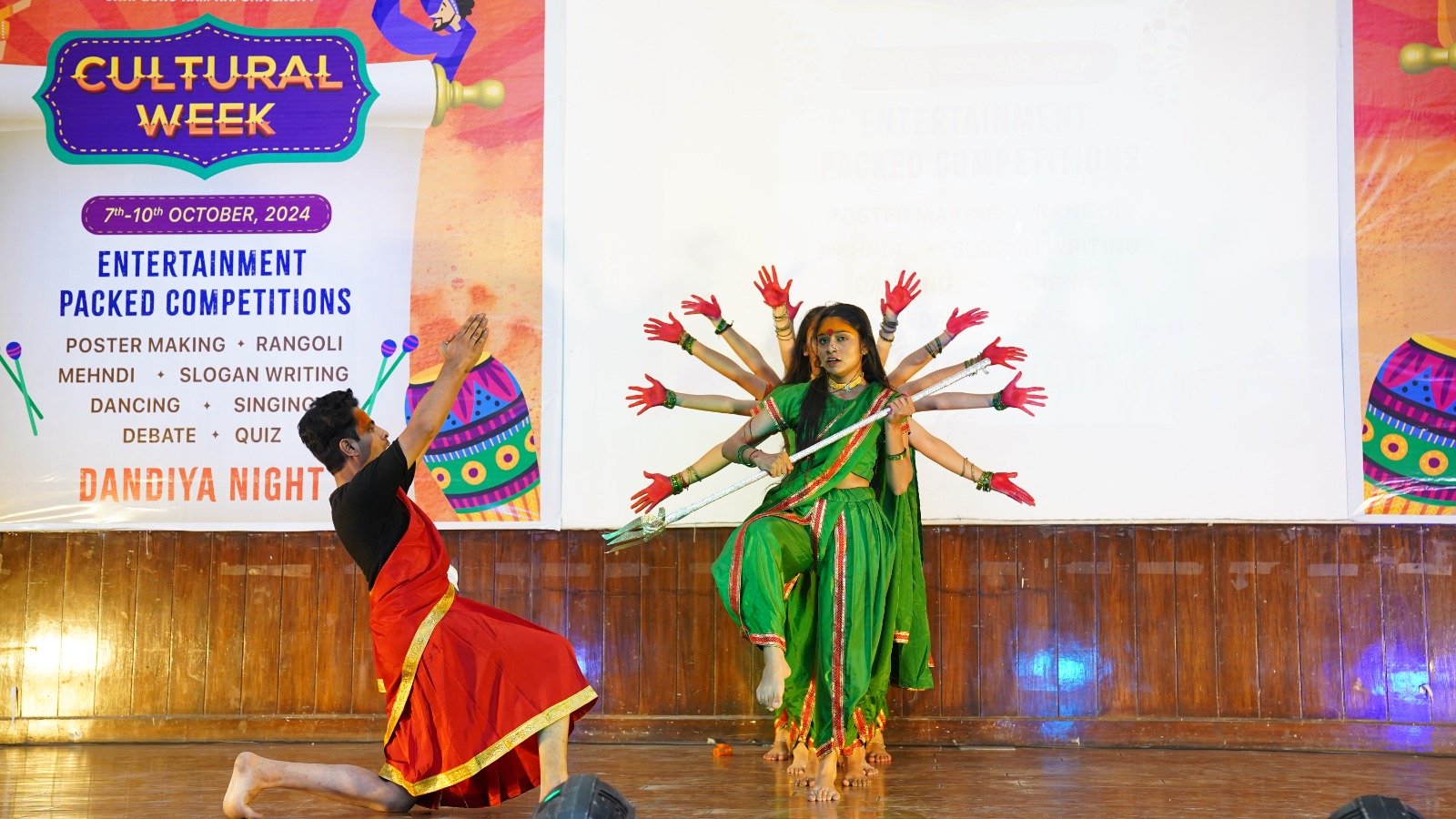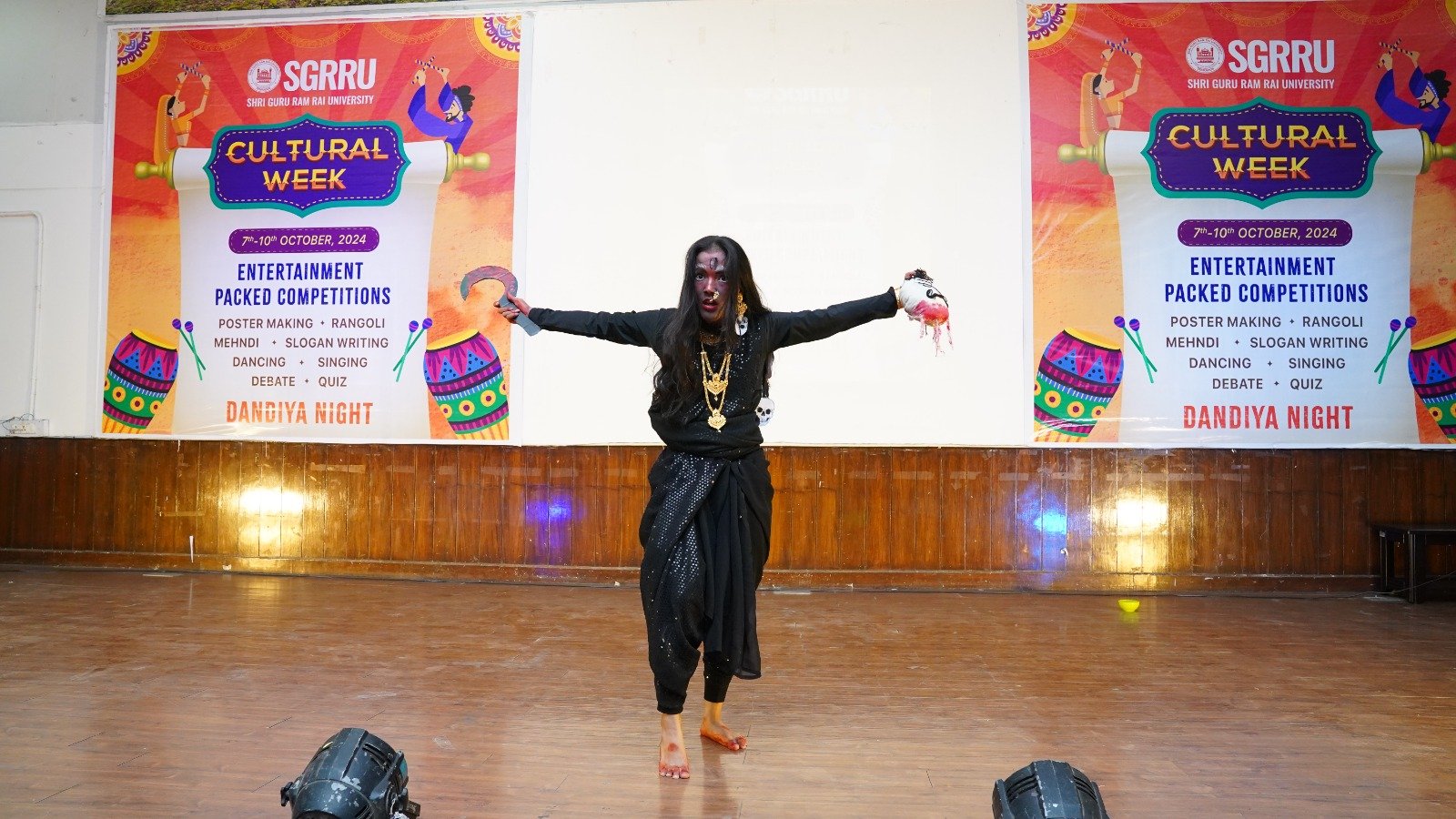 बुधवार को एकल नृत्य और समूह नृत्य की प्रतियोगिताएं आयोजित हुईं। छात्रा अनुष्का ने मां काली के रूप का दर्शन प्रस्तुत किया। नवरात्र के अवसर पर मां काली की प्रस्तुति ने माहौल को भक्तिमय बना दिया। प्रणव एण्ड ग्रुप ने पंजाबी गीत तू नी बोलदी रकाने तेरा यार बोलदा गीत पर जोरदार प्रस्तुति से दर्शकों का दिल जीत लिया। स्कूल ऑफ नर्सिंग की छात्राओं ने नृत्य के माध्यम से उत्तर पूर्वी राज्यों की लोक संस्कृति की छठा बिखेरी।