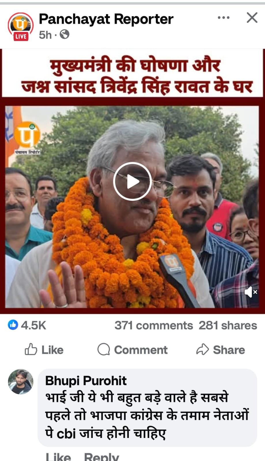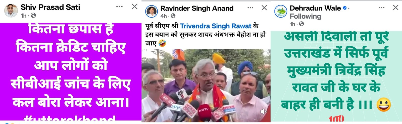 मगर सोशल में वीडियो आये कि पूर्व CM त्रिवेंद्र सिंह रावत के घर कार्यकर्ता जुटे, आतिशबाजी हुई, मिठाइयाँ बंटी पूर्व CM को भी खिलाई गई। जिसके बाद सोशल मीडिया पर लोग फट पड़े—“बेगानी शादी में अब्दुल्ला दीवाना।” और न जाने लोग सवाल उठाते हुए क्या-क्या लिखने लगे।