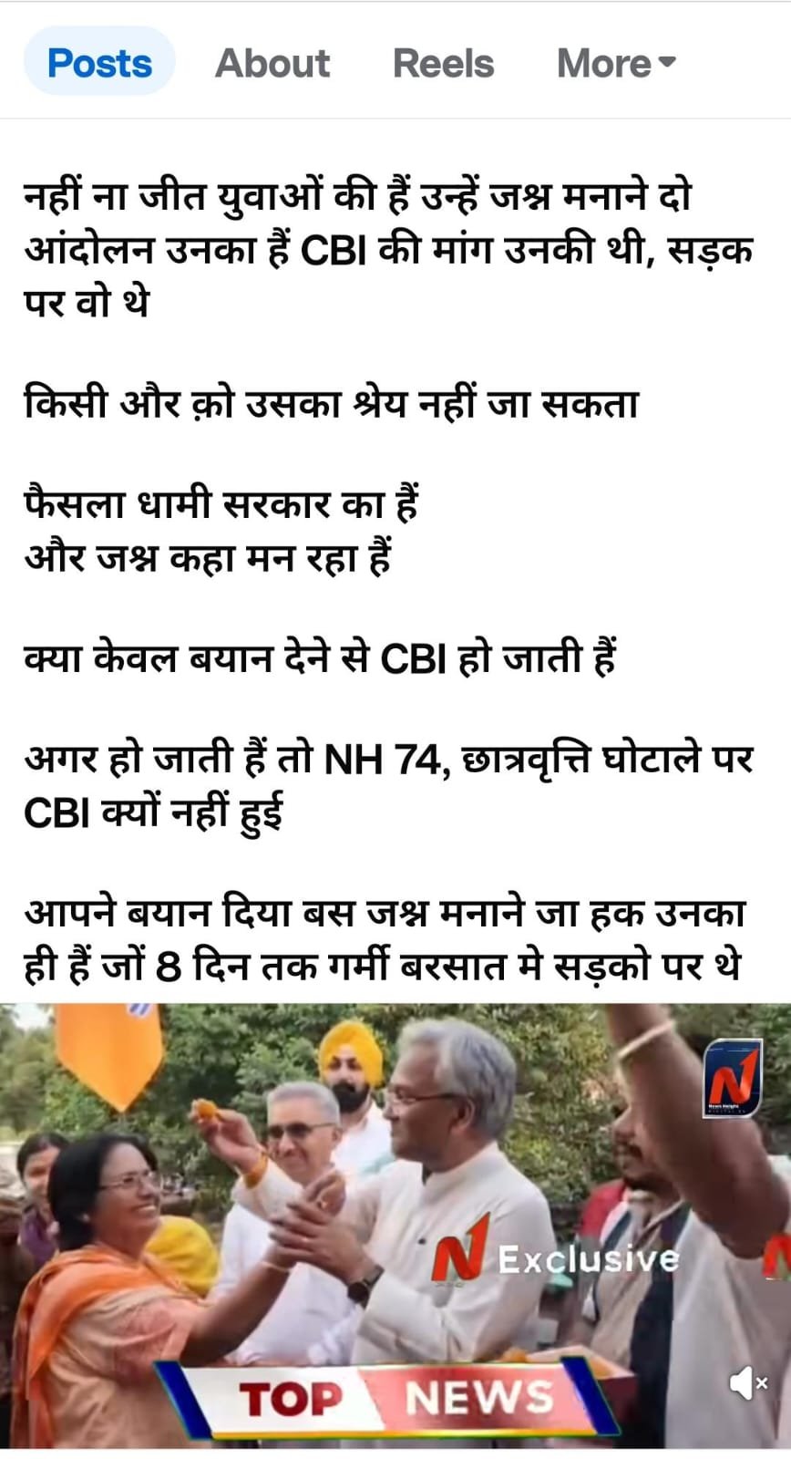 आज परेड ग्राउंड में युवाओं की आवाज़ सुनने खुद मुख्यमंत्री पुष्कर सिंह धामी पहुँचे और वहीं सीबीआई ( CBI ) जांच की संस्तुति कर दी। यह निर्णय सरकार का था, और मांग आंदोलनरत छात्रों की।