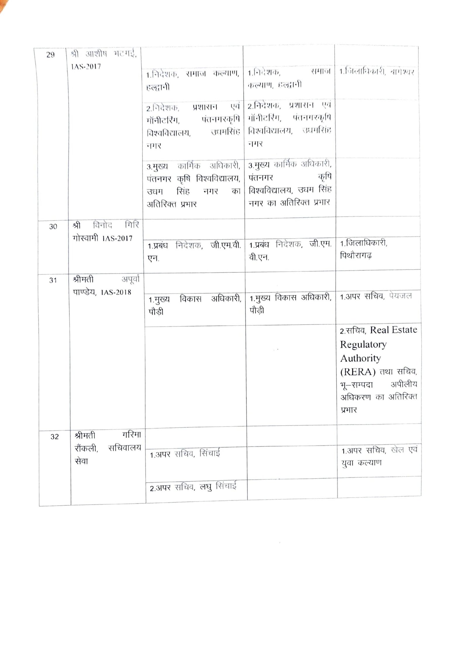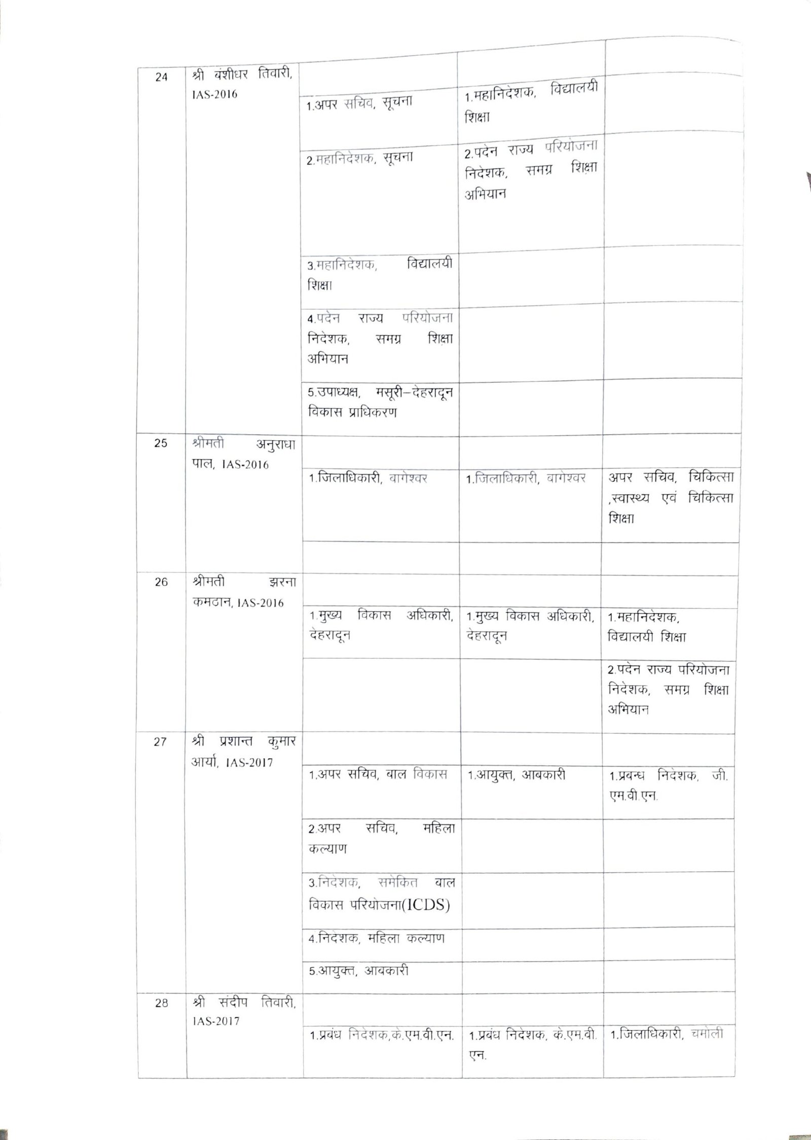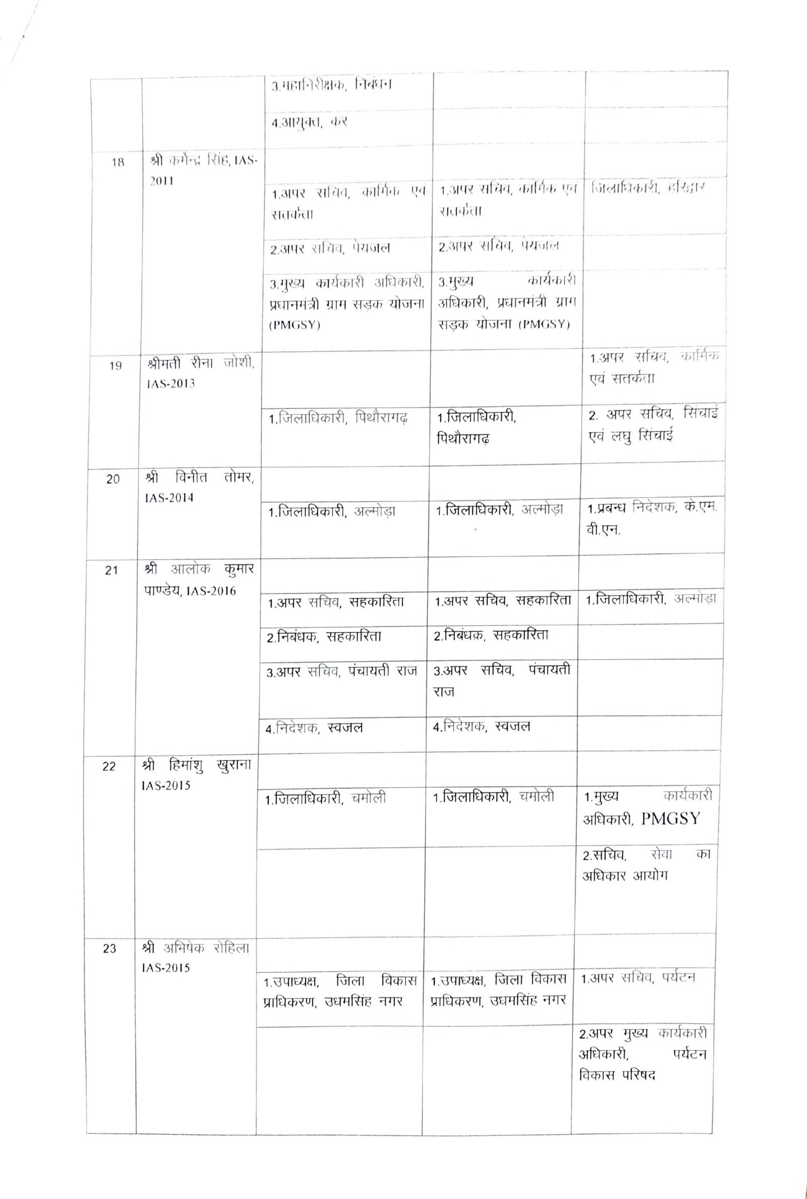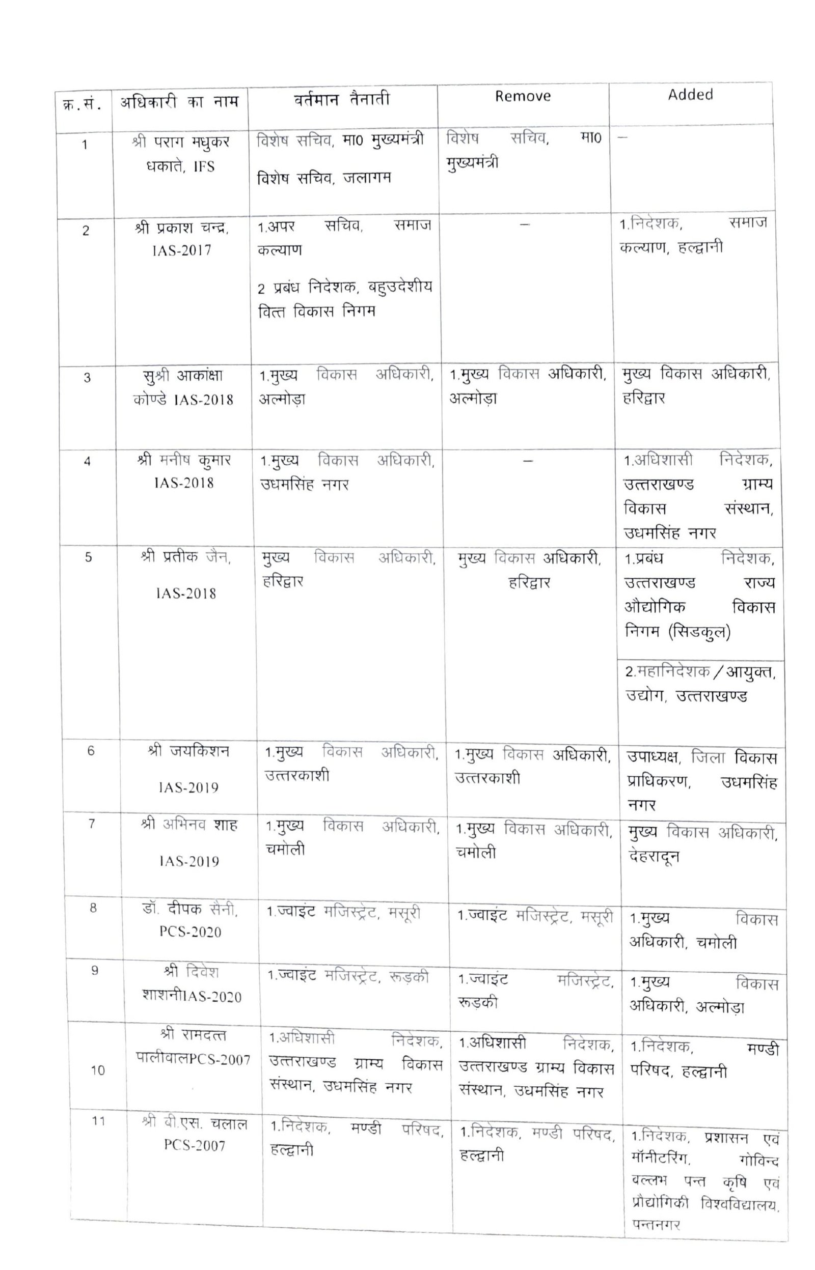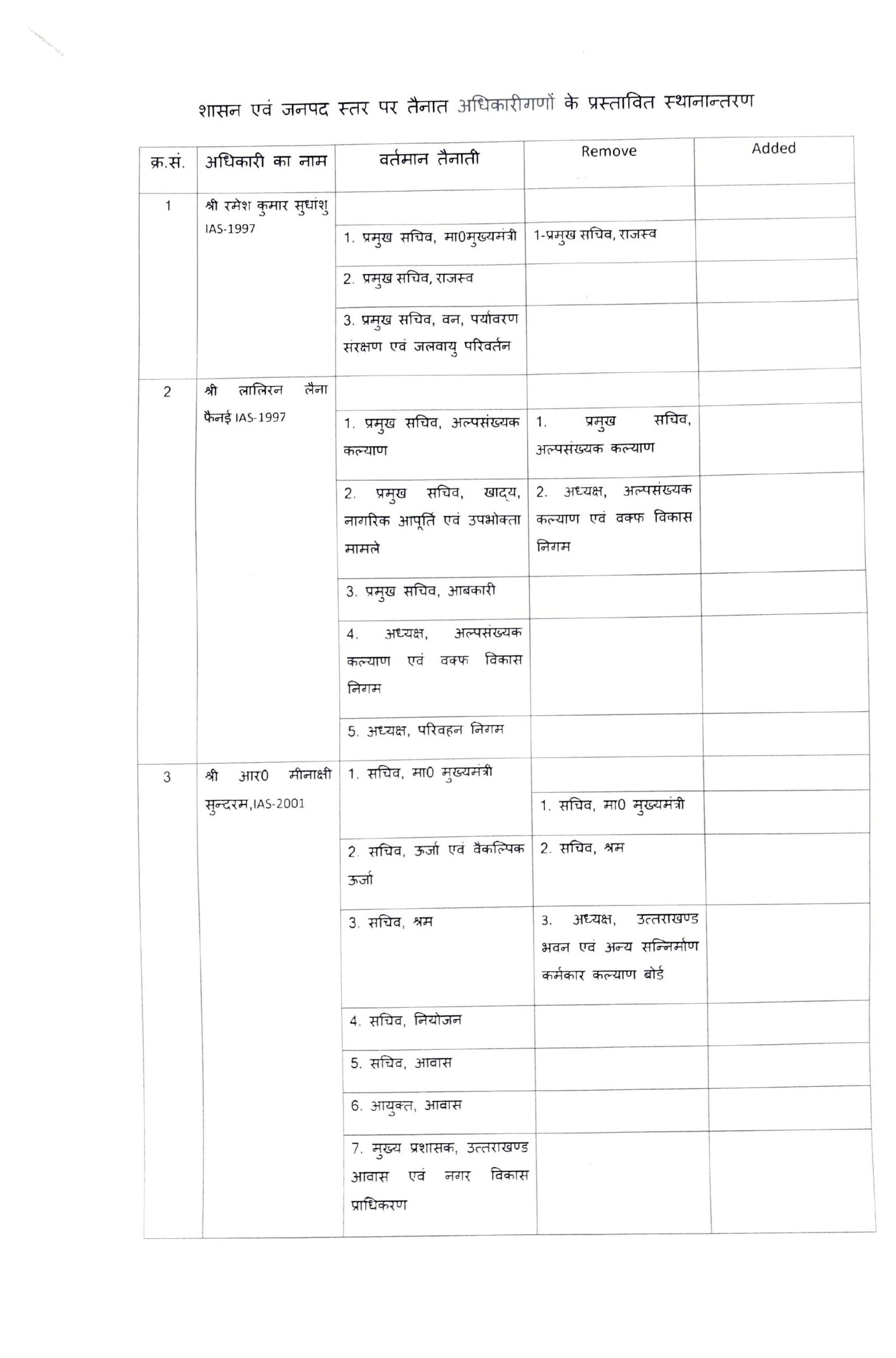उत्तराखंड शासन ने IAS, IFS एवं PCS अधिकारियों के किये स्थानान्तरण, देहरादून-हरिद्वार सहित कई जिलों के बदले डीएम, देखें सूचि