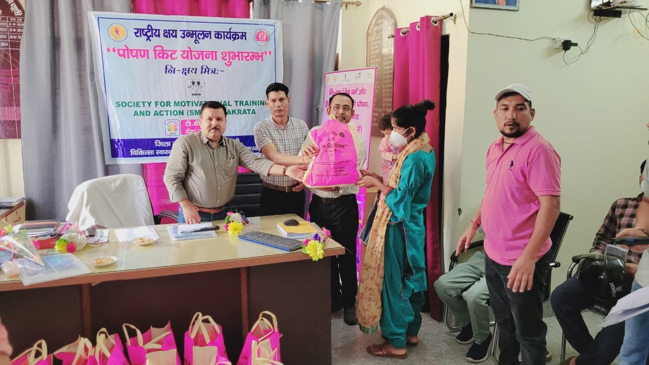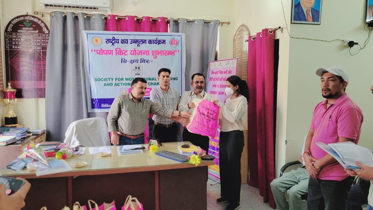 उत्तरकाशी। राष्ट्रीय स्वास्थ्य मिशन के तत्वाधान में राष्ट्रीय क्षय उन्मूलन कार्यक्रम के अन्तर्गत क्षयरोगियों को मुख्य चिकित्सा अधिकारी डॉ. बीएस रावत द्वारा पोषण किट वितरित किये गये। पोषण किट निक्षय मित्र समता एन0जी0ओ0 द्वारा के0 राम चन्द्र राव ट्रांसमिशन एण्ड प्रोजेक्ट प्रा0लिमि0 के माध्यम से प्रदान किये गये। समता एन0जी0ओ0 द्वारा जनपद के 100 क्षयरोगियों को पोषण किट प्रदान किये गए। साथ ही जूम मीटिंग के माध्यम से राज्य क्षय नियंत्रण अधिकारी डा0 पंकज सिंह द्वारा प्रतिभाग किया गया तथा जिला क्षयरोग अधिकारी, डा0 कुलवीर सिंह राणा द्वारा राष्ट्रीय क्षय उन्मूलन कार्यक्रम के अन्तर्गत जनपद में चल रही गतिविधियों से अवगत कराया गया। इस मौके पर अपर मुख्य चिकित्सा अधिकारी वी0एस0 पांगती, समता एन0जी0ओ0 प्रोजेक्ट हेड वर्षा कौशिक, प्रोजेक्ट कार्डिनेटर कुवंर सिंह चौहान, टी0बी0क्लीनिक से अजय बिष्ट, रघुवीर कण्डारी, कमल भण्डारी, जोत सिंह बिष्ट, नवीन नौटियाल आदि उपस्थित रहे।