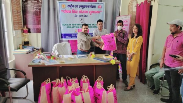 उत्तरकाशी। राष्ट्रीय स्वास्थ्य मिशन के तत्वाधान में राष्ट्रीय क्षय उन्मूलन कार्यक्रम के अन्तर्गत क्षयरोगियों को मुख्य चिकित्सा अधिकारी डॉ. बीएस रावत द्वारा पोषण किट वितरित किये गये। पोषण किट निक्षय मित्र समता एन0जी0ओ0 द्वारा के0 राम चन्द्र राव ट्रांसमिशन एण्ड प्रोजेक्ट प्रा0लिमि0 के माध्यम से प्रदान किये गये। समता एन0जी0ओ0 द्वारा जनपद के 100 क्षयरोगियों को पोषण किट प्रदान किये गए। साथ ही जूम मीटिंग के माध्यम से राज्य क्षय नियंत्रण अधिकारी डा0 पंकज सिंह द्वारा प्रतिभाग किया गया तथा जिला क्षयरोग अधिकारी, डा0 कुलवीर सिंह राणा द्वारा राष्ट्रीय क्षय उन्मूलन कार्यक्रम के अन्तर्गत जनपद में चल रही गतिविधियों से अवगत कराया गया। इस मौके पर अपर मुख्य चिकित्सा अधिकारी वी0एस0 पांगती, समता एन0जी0ओ0 प्रोजेक्ट हेड वर्षा कौशिक, प्रोजेक्ट कार्डिनेटर कुवंर सिंह चौहान, टी0बी0क्लीनिक से अजय बिष्ट, रघुवीर कण्डारी, कमल भण्डारी, जोत सिंह बिष्ट, नवीन नौटियाल आदि उपस्थित रहे।