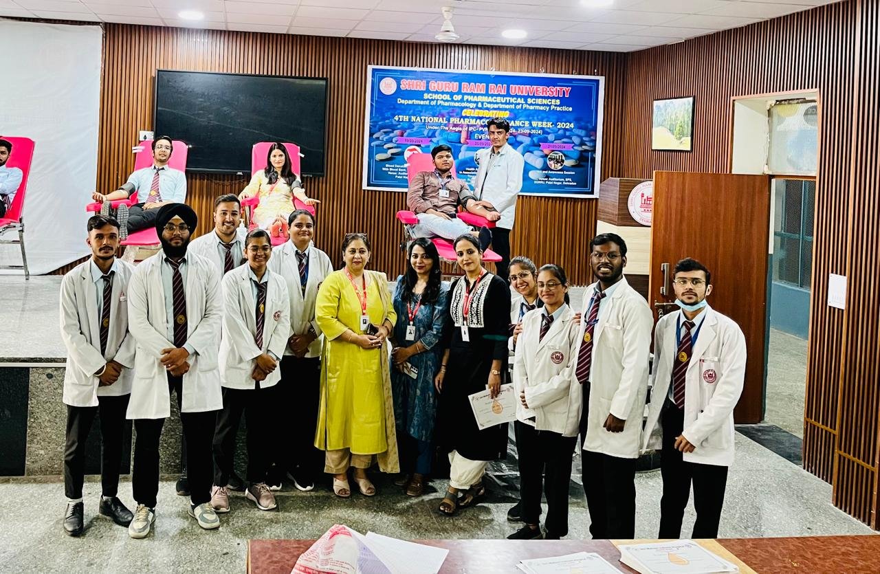 देहरादून।  श्री गुरु राम राय विश्वविद्यालय के स्कूल ऑफ  फार्मास्यिुटिकल सांइसेज के द्वारा चैथे नेशनल फार्माकोविजिलैन्स सप्ताह का आयोजन किया गया। श्री गुरु राम राय विश्वविद्यालय (एसजीआरआरयू) के प्रेसीडेंट श्रीमहंत देवेन्द्र दास जी महाराज के आर्शीवाद व प्रेरणा से आयोजित इस नेशनल फार्माकोविजिलैन्स सप्ताह में तीन दिनों तक विभिन्न कार्यक्रम आयेाजित किए गए। प्रथम दिवस में स्वैच्छिक रक्तदान शिविर का आयोजन हुआ। स्कूल ऑफ फार्मास्यिुटिकल सांइसेज द्वारा इंडियन फार्मोकोपियल कमीशन –  फार्माकोविजिलैन्स प्रोग्राम ऑफ इंडिया के तत्वाधान एवं श्री मंहत इन्दिरेश अस्पताल ब्लड बैंक के सहयोग से आयोजित स्वैच्छिक रक्तदान शिविर में 105 यूनिट रक्तदान हुआ।