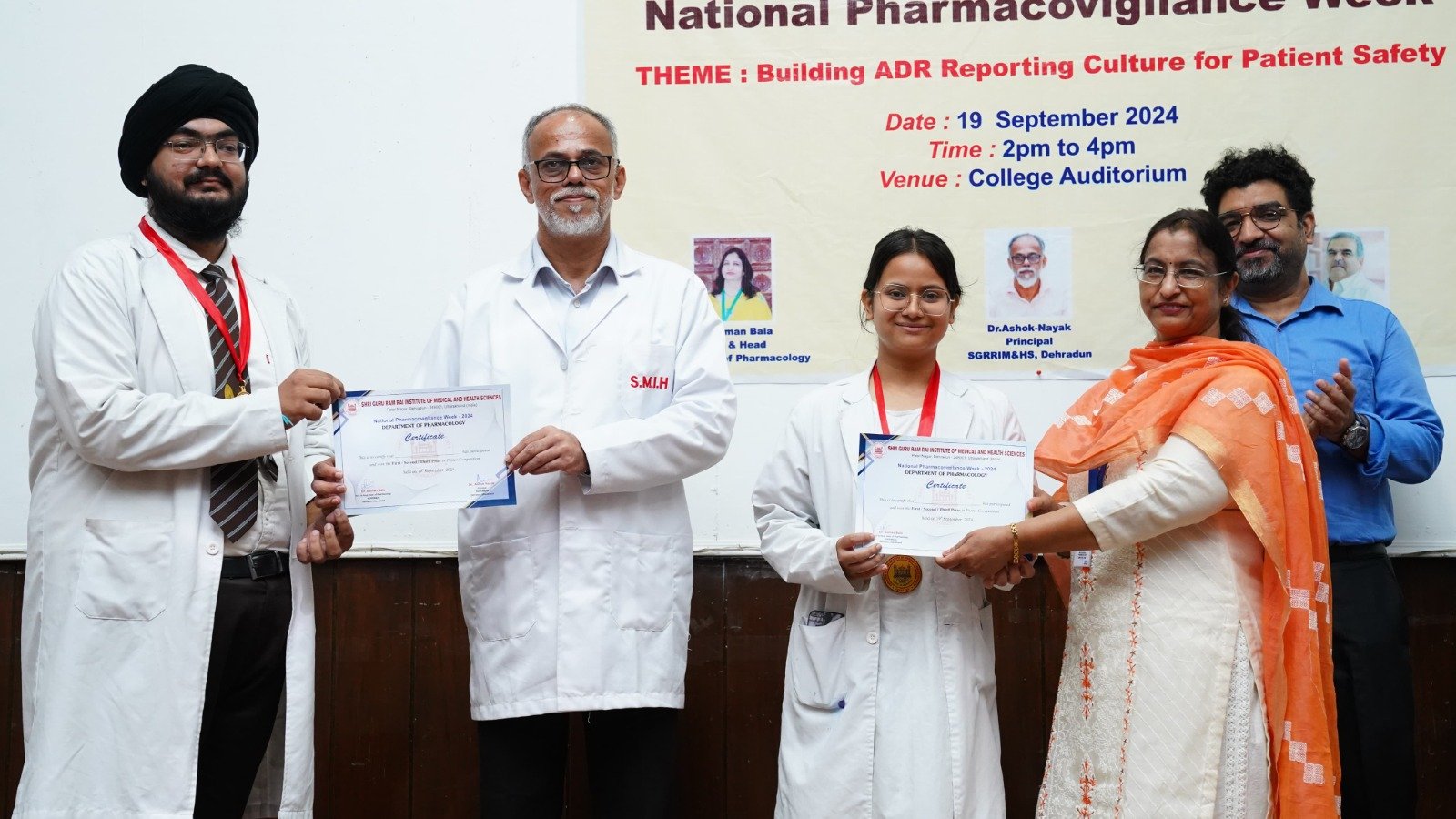 नेशनल फार्माकोविजिलैन्स सप्ताह  के अवसर पर एसजीआरआर इंस्टीट्यूट ऑफ मेडिकल एण्ड हैल्थ साइंसेज़ के फार्माकोलाॅजी विभाग की ओर से वाकथाॅन और पोस्टर प्रतियोगिता का आयेाजन किया गया। पोस्टर प्रतियोगिता में ऋषिता रमोला एण्ड ग्रुप अव्वल रहे। एसजीआरआर मेडिकल काॅलेज के प्राचार्य डॉ. अशोक नायक व श्री महंत इन्दिरेश अस्पताल के मुख्य चिकित्सा अधीक्षक डॉ. उत्कर्ष शर्मा ने हरी झण्डी दिखाकर रैली को रवाना किया। मेडिकल छात्र-छात्राओं ने मेडिकल काॅलेज परिसर के फार्माकोलाॅजी विभाग से श्री महंत इन्दिरेश अस्पताल तक रैली निकालकर जनजागरूकता का संदेश दिया। कार्यक्रम को सफल बनाने में फार्माकोलाॅजी विभाग की विभागाध्यक्ष डॉ. सुमन बाला, डॉ. हेनरी जेम्स, डॉ. शालू बावा, डॉ. कविता, डॉ. छवि, डॉ. श्रुति, डॉ. सचिन, डॉ. बिग्नेश, डॉ. अर्चना, राजीव वसी आदि का विशेष सहयोग रहा।