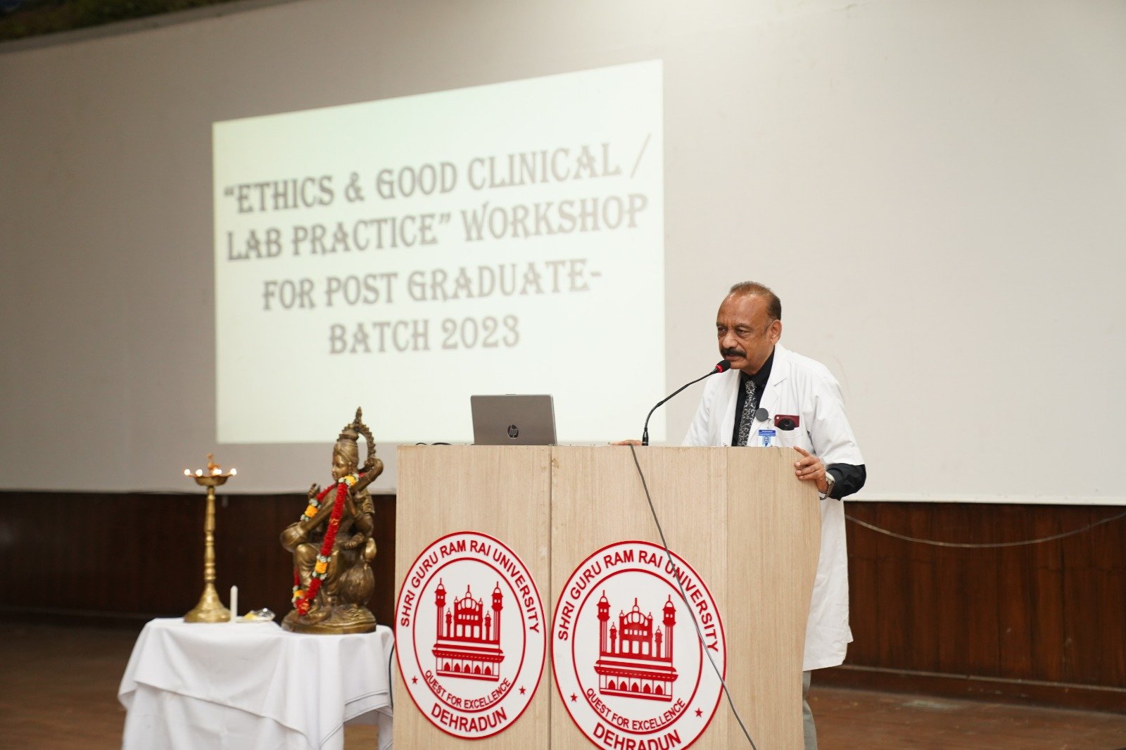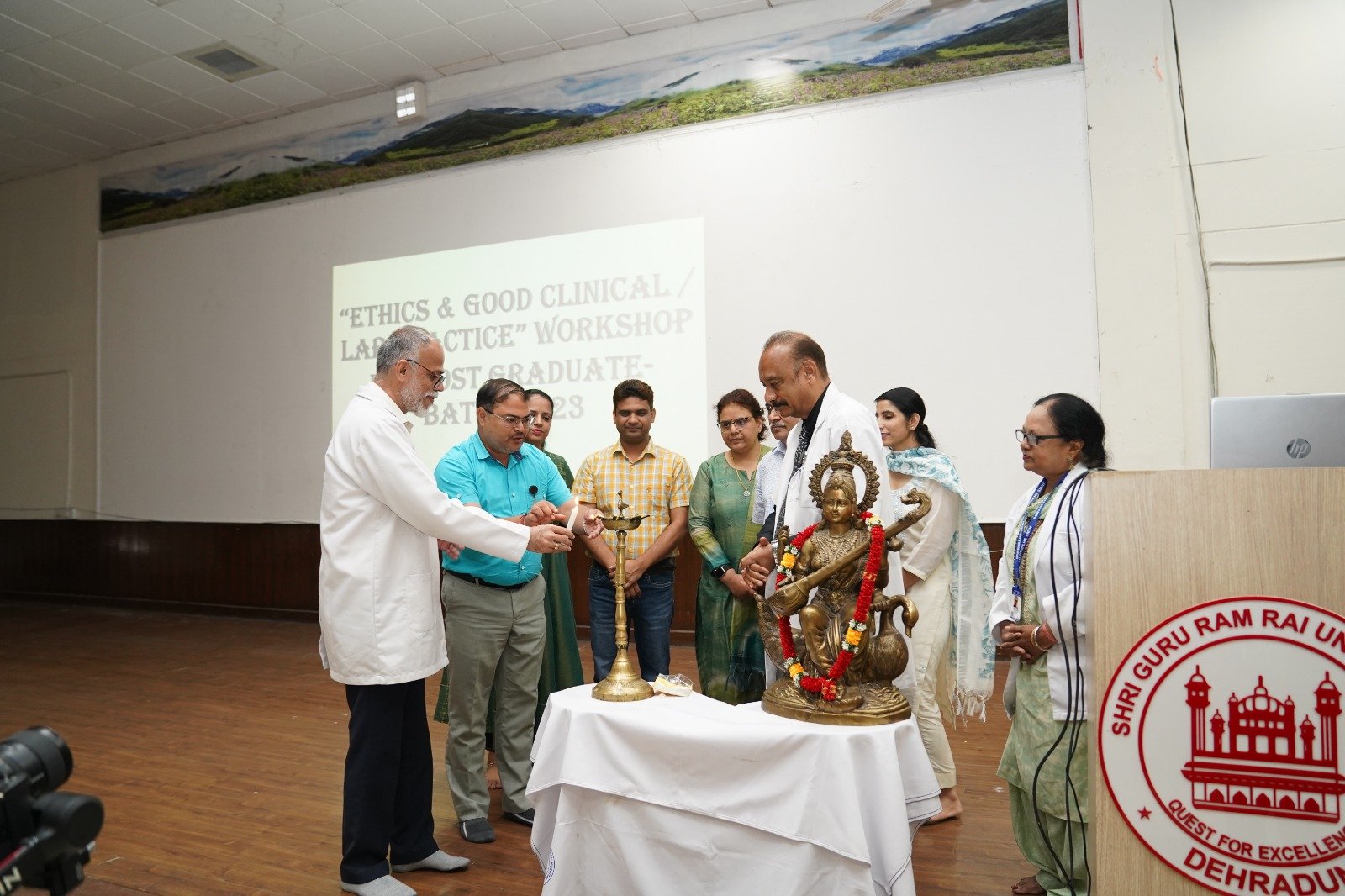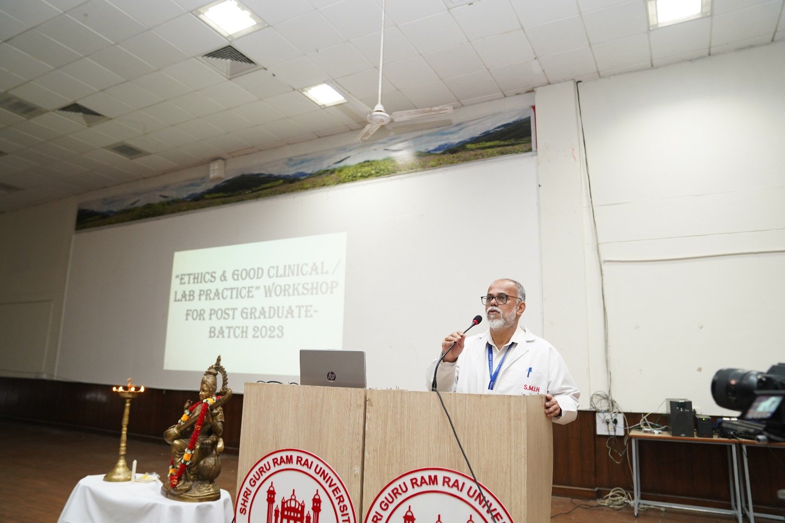 देहरादून। श्री गुरु राम राय इंस्टीट्यूट ऑफ मेडिकल एण्ड हेल्थ साइंसेज में इथिक्स एवं गुड क्लीनिकल एवं लैब प्रैक्टिस विषय पर एक दिवसीय कार्यशाला का आयोजन किया गया। कार्यशाला में एसजीआरआर मेडिकल काॅलेज के मेडिकल पोस्ट ग्रेजुएट, डीएम व एमसीएच कोर्स कर रहे 100 से अधिक छात्र-छात्राओं ने सक्रिय सहभागिता की।